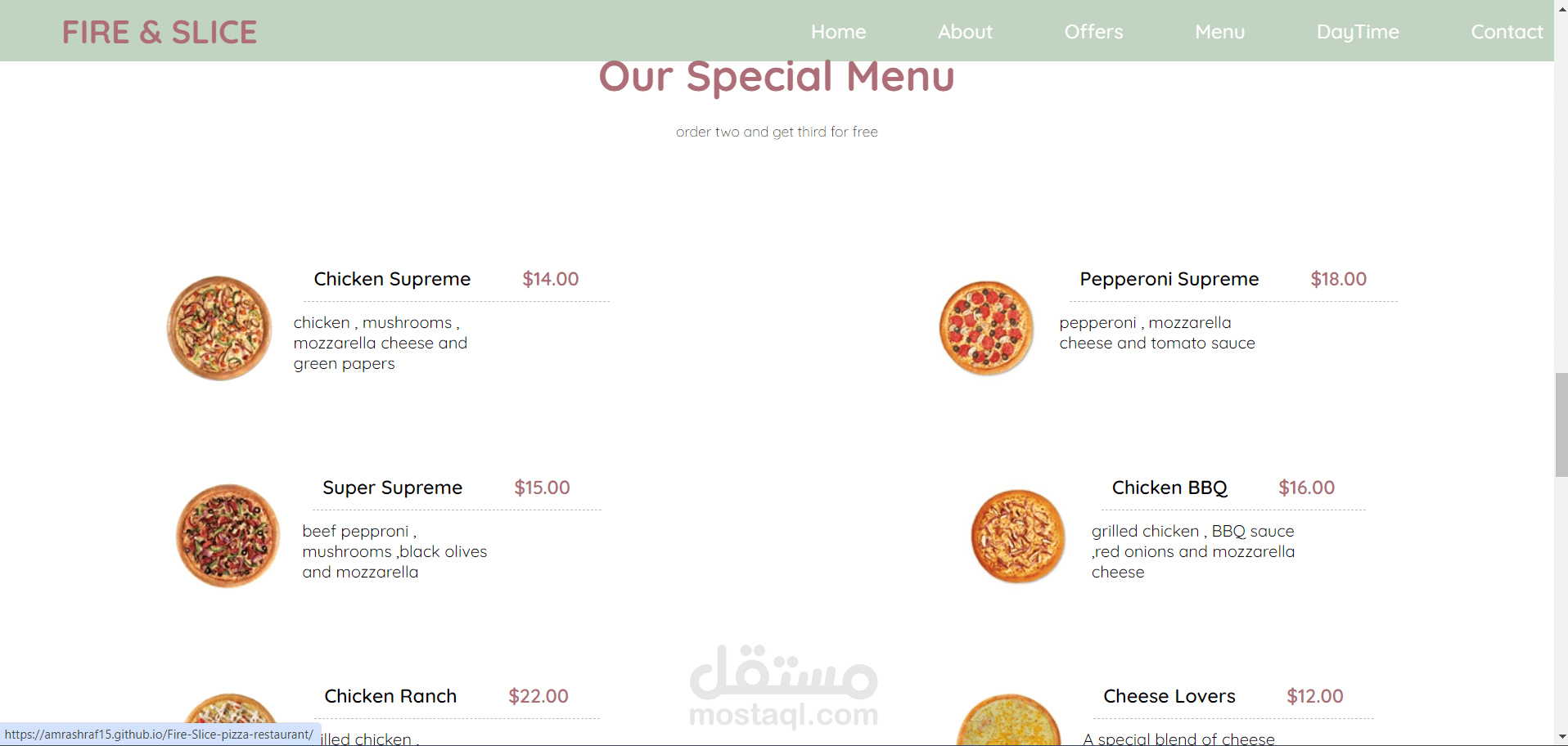 Enjoy a cozy, welcoming atmosphere enhanced by our sleek website design, built with HTML, CSS, and JavaScript for a smooth and engaging user experience. Whether dining in or grabbing a pizza to go, Fire & Slice delivers an unforgettable pizza experience.