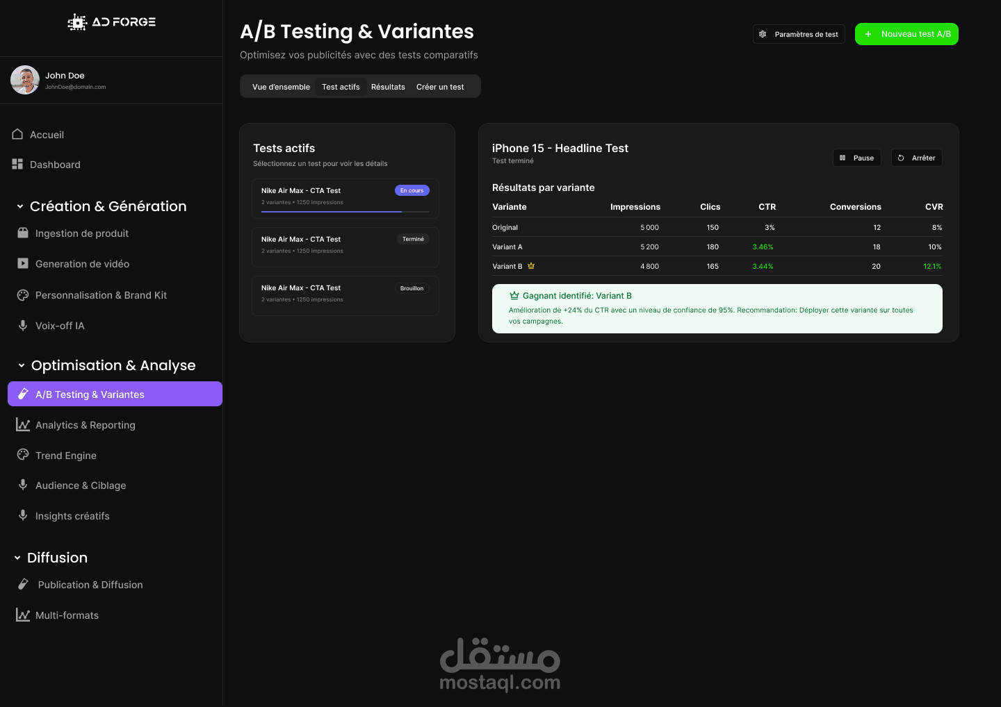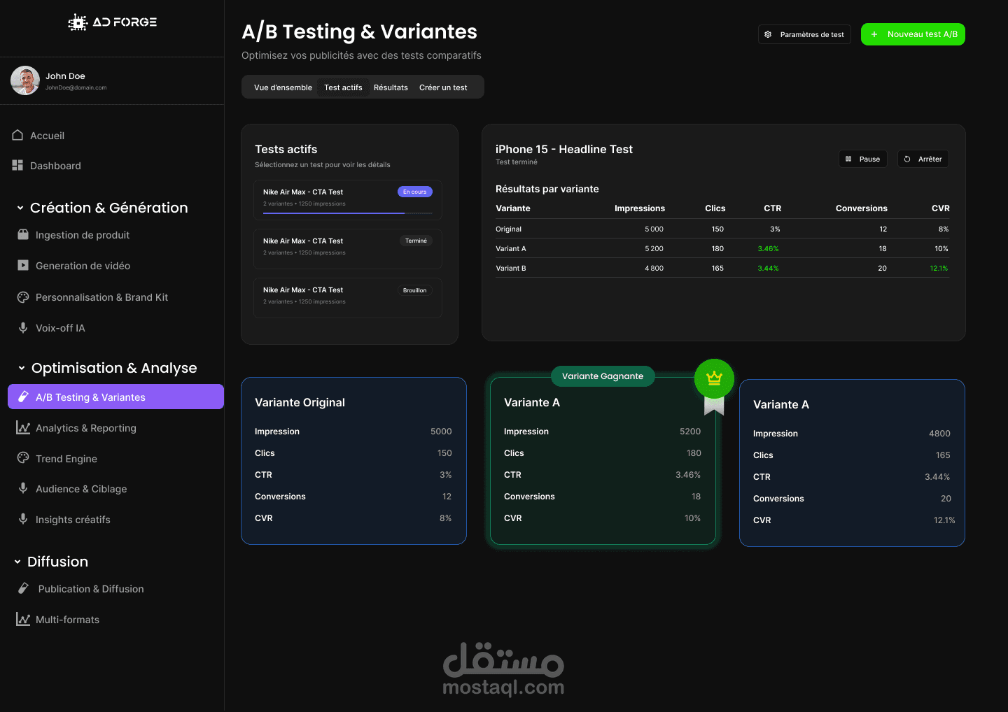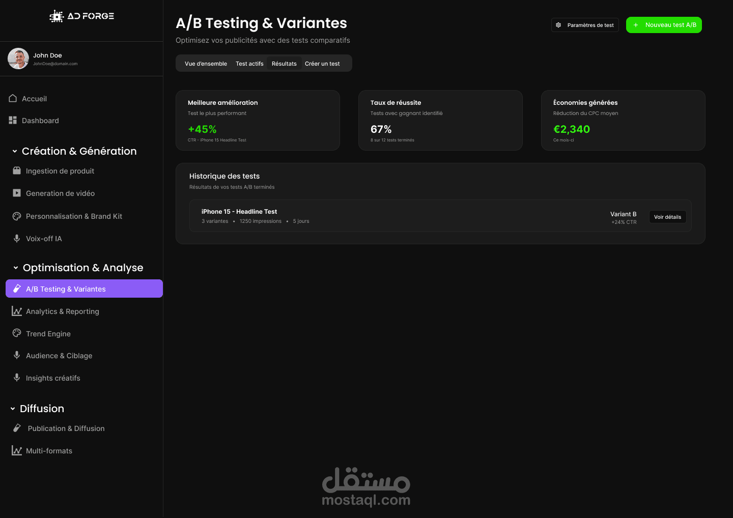 النتيجة هي واجهة قوية ومباشرة تعكس شخصية AD Forge كوكالة تجمع بين الإبداع والدقة التقنية، وتقدّم تجربة رقمية واضحة ومقنعة.