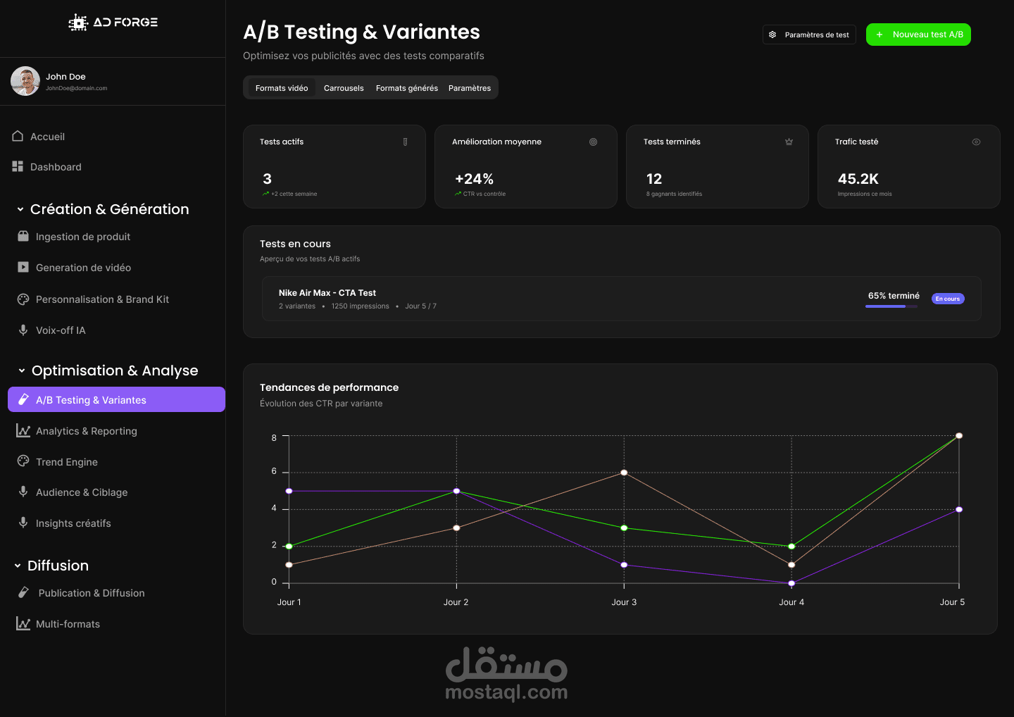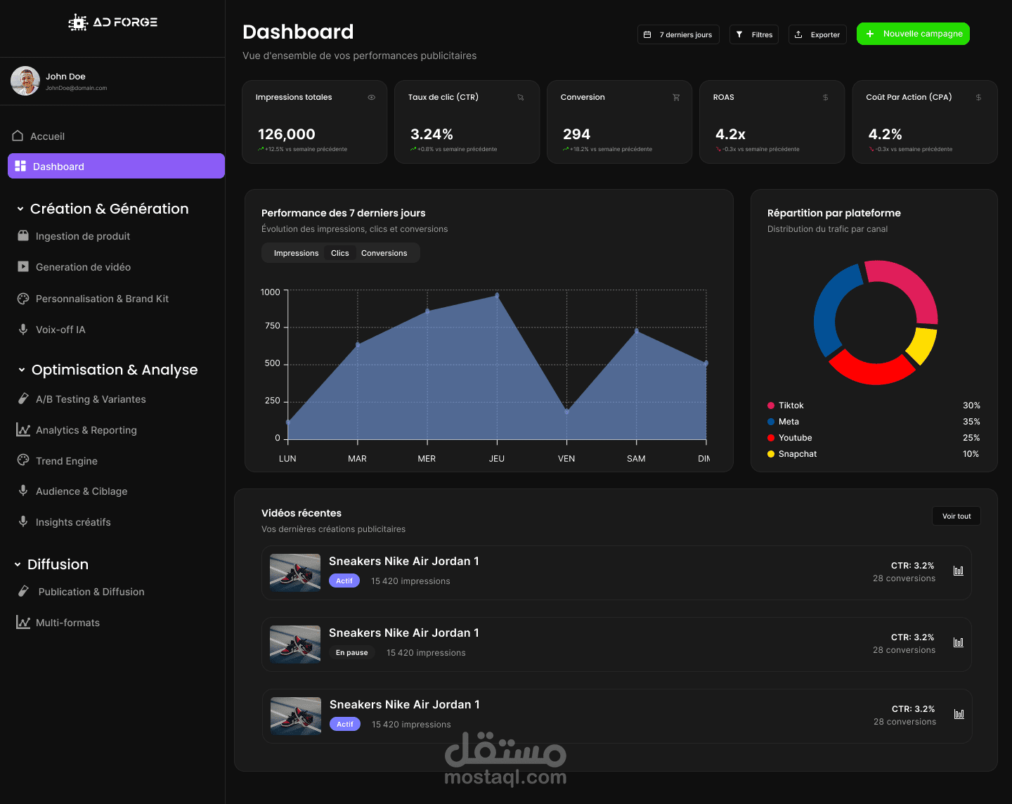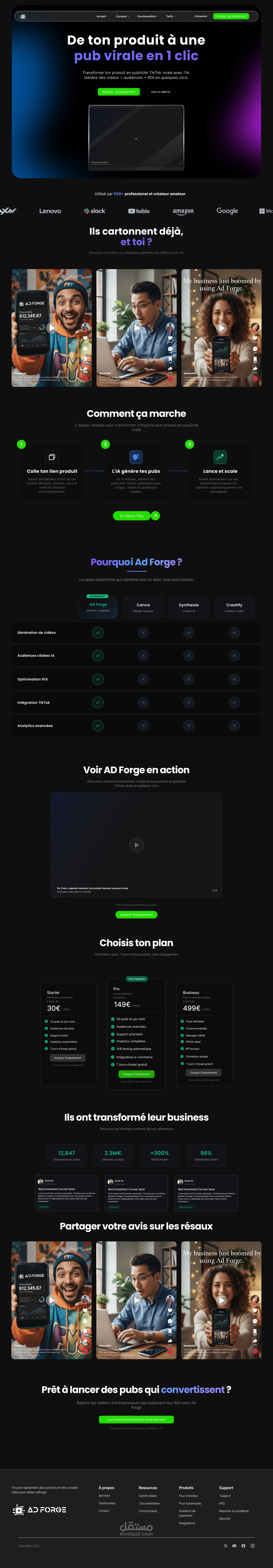 تم تصميم واجهة موقع AD Forge بهدف إبراز هوية وكالة رقمية متخصصة في تطوير العلامات التجارية والمحتوى الإبداعي. ركزت في هذا المشروع على المزج بين التصميم العصري والبنية المنظمة، بما يعكس احترافية الوكالة وسهولة وصول المستخدم إلى خدماتها.