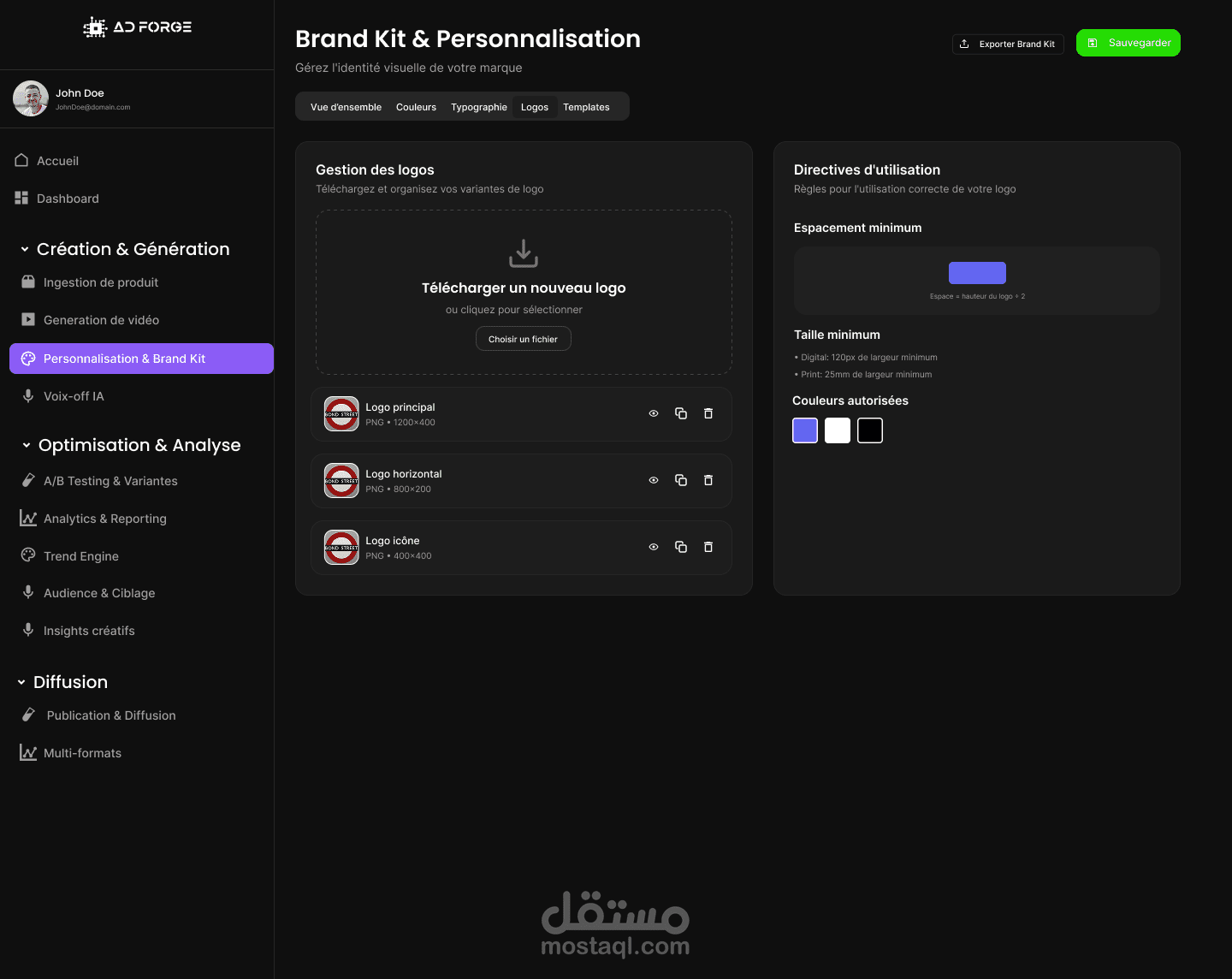 استخدام ألوان قوية وخطوط نظيفة لتأكيد الطابع الاحترافي للعلامة.