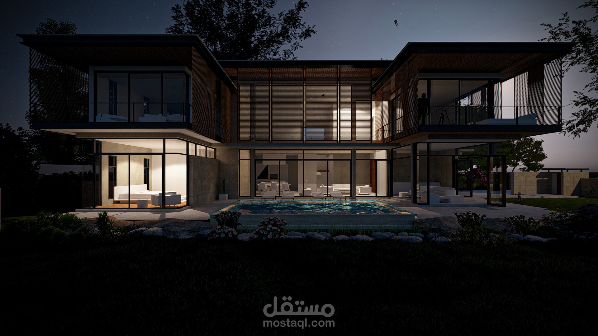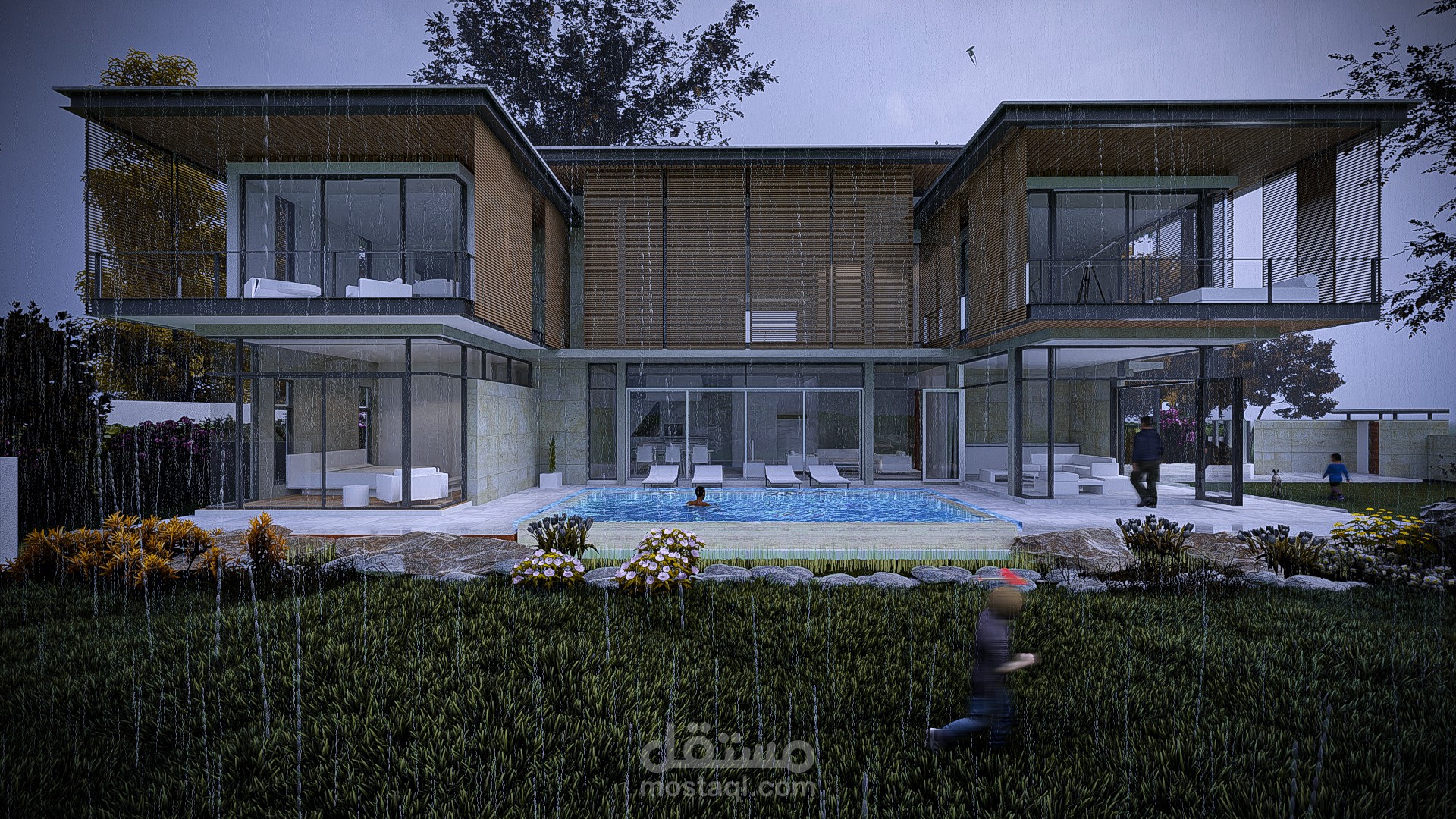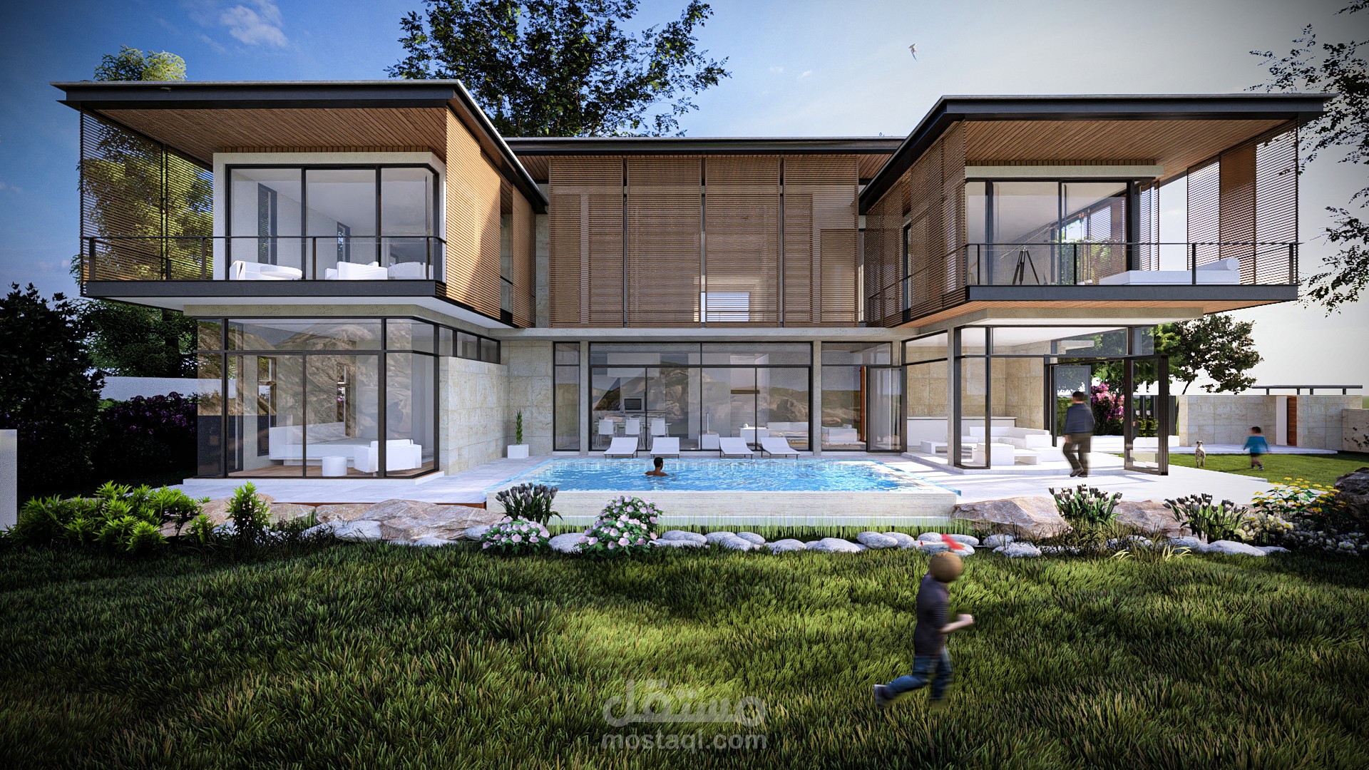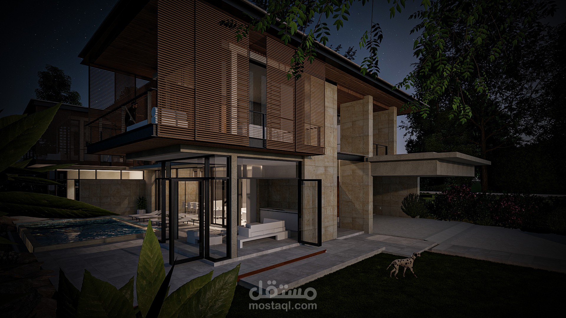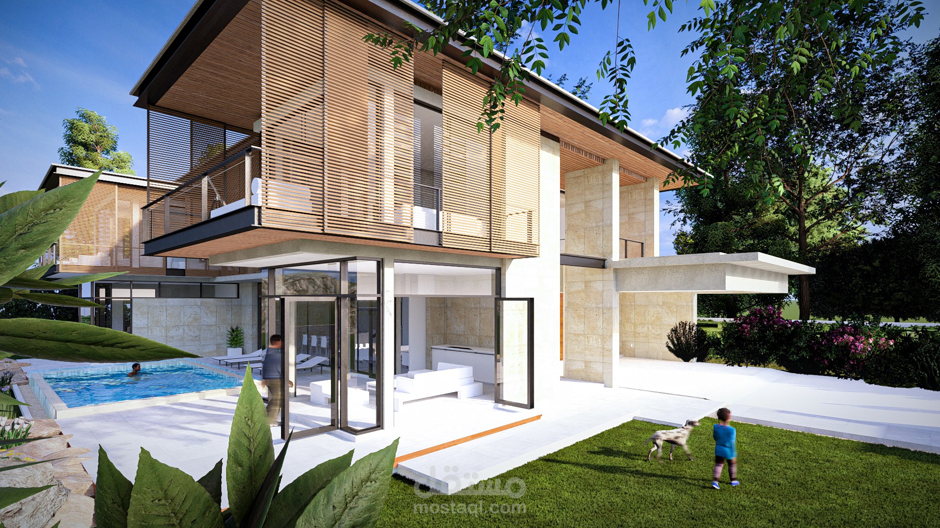 تصميم خارجي واجهه فيلا مع اختيار قياسي للألوان