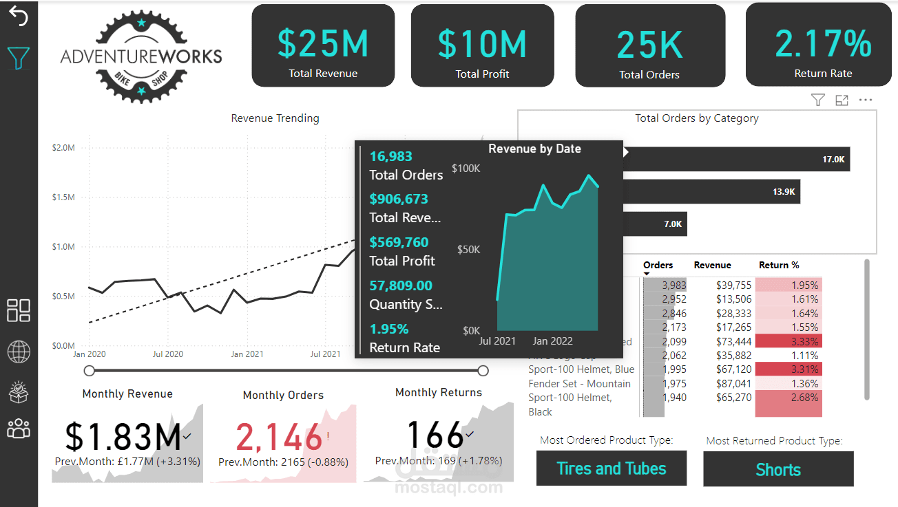 في مشروع Adventure Works، قمت بتحليل بيانات خاصة بالشركة لتوفير رؤى شاملة حول الأداء العام. ركز التحليل على جوانب متعددة مثل المبيعات، العملاء، والمنتجات، مما ساعد في تحديد النقاط القوية والتحديات التي تواجه الشركة. من خلال التقرير التفاعلي، أصبح من السهل على الإدارة فهم البيانات واتخاذ قرارات استراتيجية مبنية على أسس واضحة، مما أدى إلى تحسين الكفاءة العامة وزيادة العائدات.