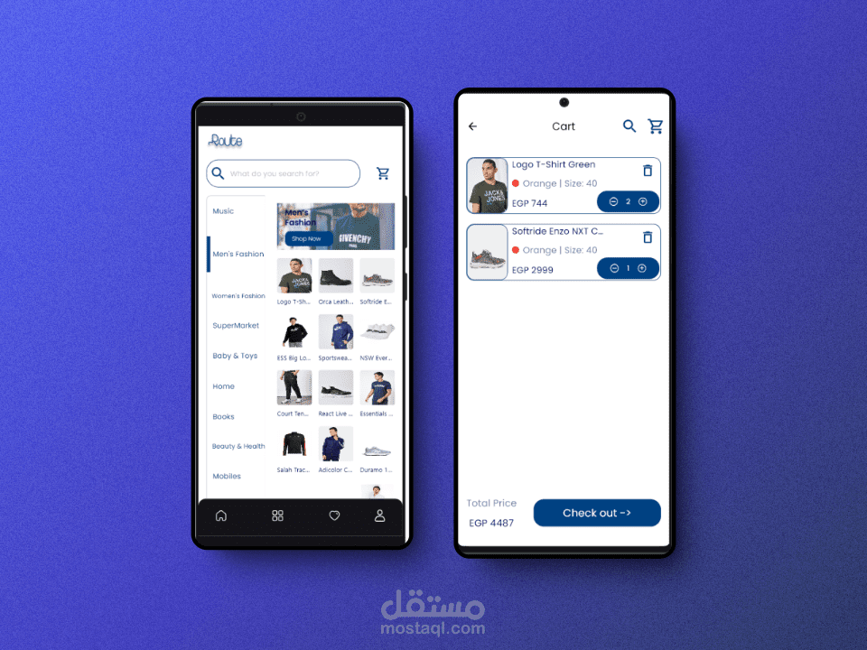 سلة التسوق: يقدر المستخدمين يضيفوا المنتجات لسلة التسوق، يشوفوا اختياراتهم، ويكملوا عملية الشراء.