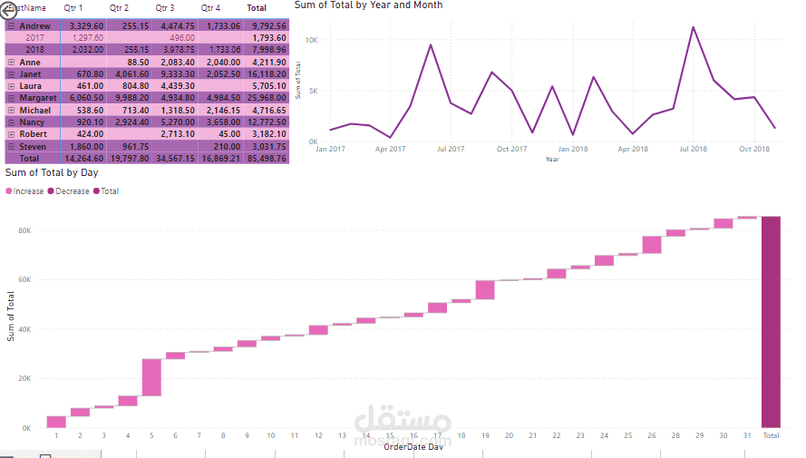 تحليل شامل ومتكامل: تغطي اللوحة مؤشرات الأداء الرئيسية، مثل الإيرادات والمصروفات والأرباح، مع عرض لتحليل الأداء الشهري والسنوي.
