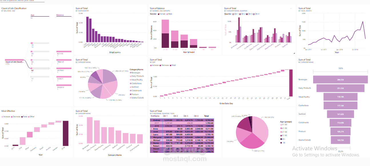 تصميم تفاعلي واحترافي: اللوحة مزودة بتصميم بسيط وسهل الاستخدام، يعرض البيانات بشكل تفاعلي ويتيح للمستخدمين الانتقال بين التحليلات والتقارير بسهولة.