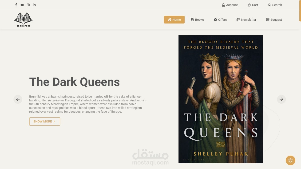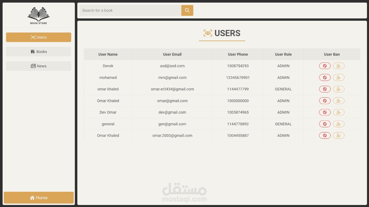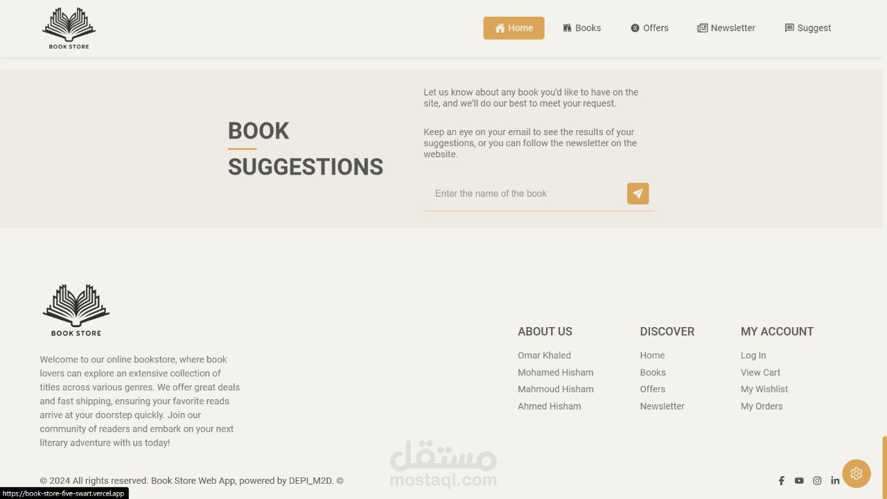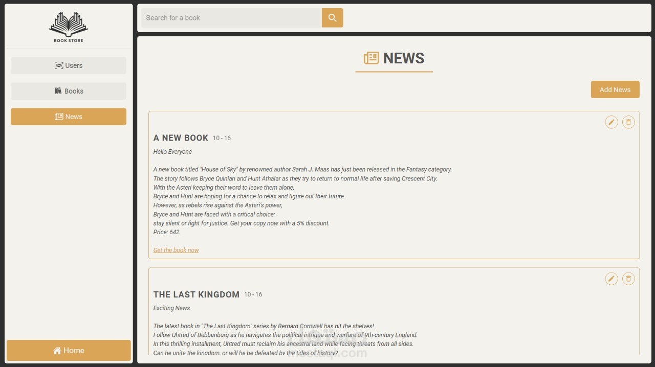 Book Store هو موقع بيع الكتب، طُوّرباستخدام React للواجهة الأمامية وNode.js مع Express للواجهة الخلفية.ومعه لوحة تحكم متقدمة تتيح اللوحة إدارة سلسة للمخزون، وعرض بيانات المبيعات وتحليلات المستخدمين في الوقت الفعلي، مع تقديم إحصائيات شاملة لدعم اتخاذ قرارات ذكية. توفر واجهة سهلة الاستخدام للمشرفين، تشمل تصفية الكتب وتتبع الطلبات وعرض التقارير لمساعدة الموقع على تحسين تجربة المستخدم وزيادة المبيعات.