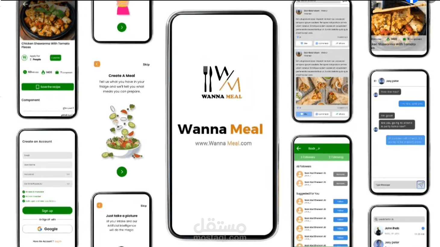 تطبيق يستخدم الذكاء الاصطناعي والواقع المعزز لتقديم وصفات طعام بناءً على المكونات المتاحة. يشمل خصائص متميزة مثل واجهات باللغتين، السمات الداكنة والفاتحة، مع مجتمع للتفاعل بين المستخدمين.