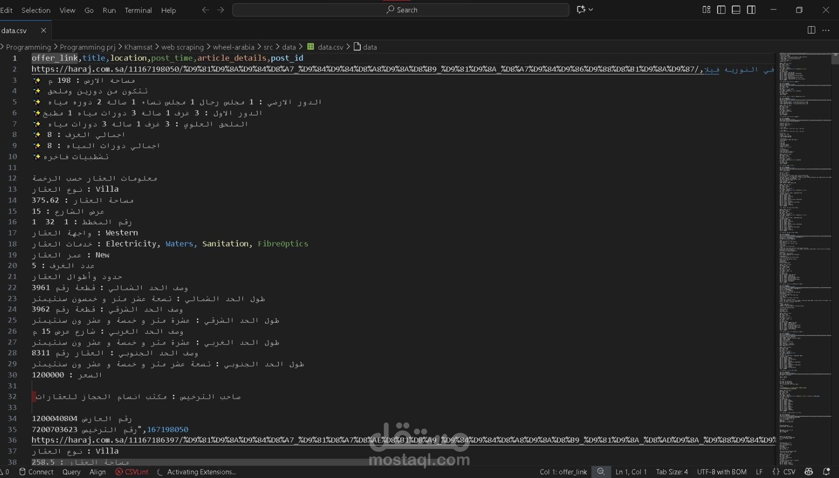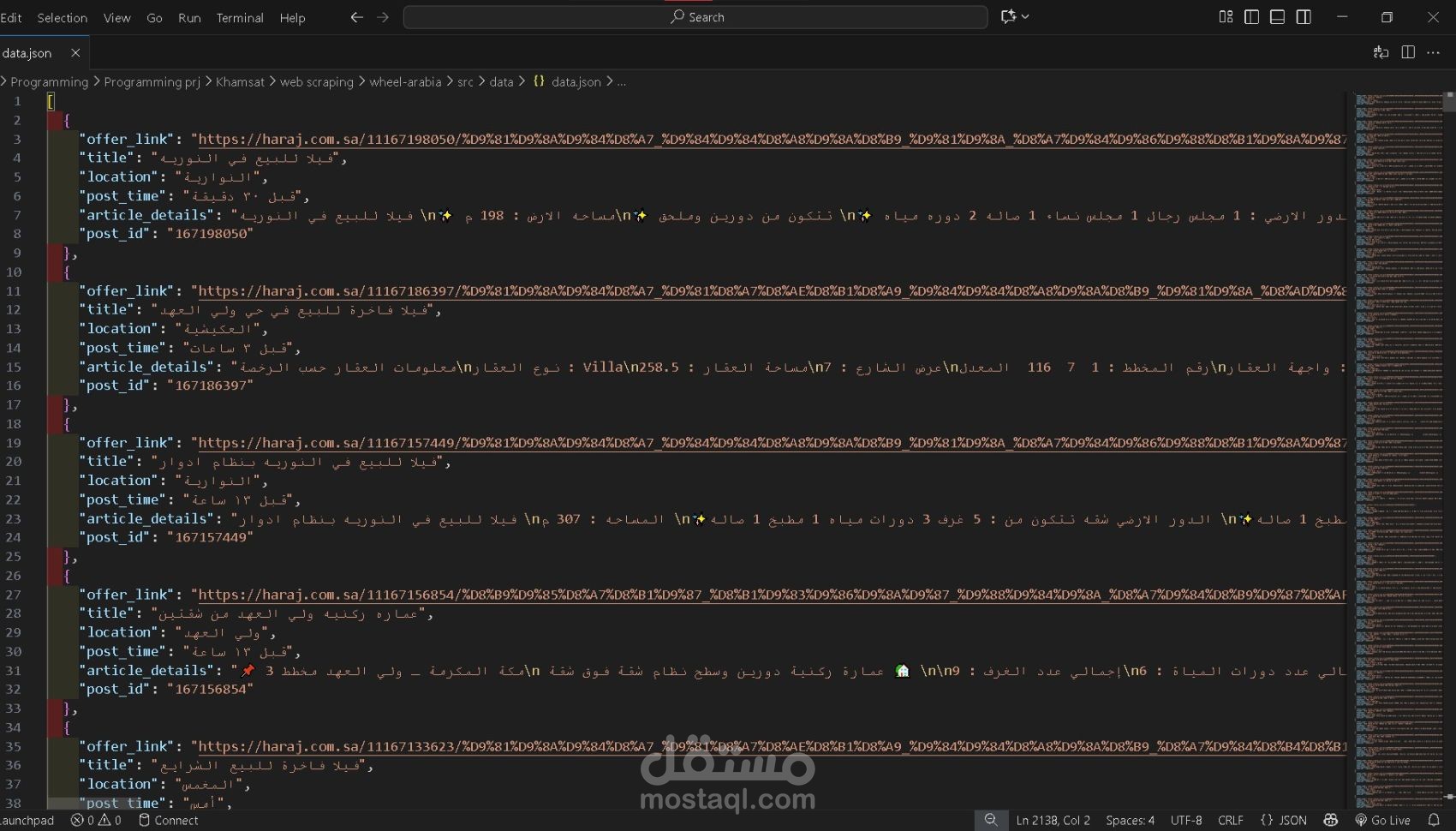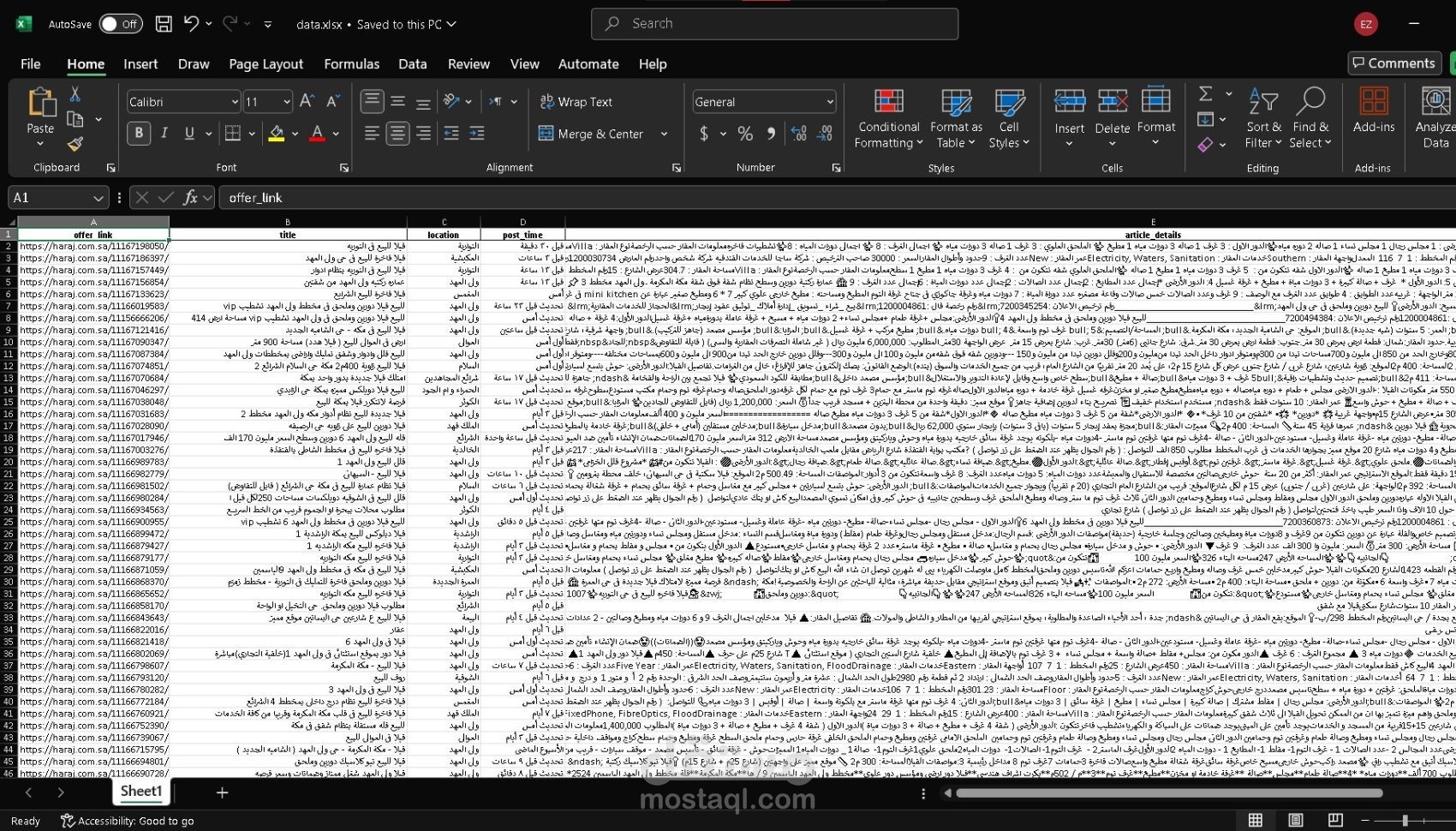 قمت بتطوير سكربت احترافي بلغة Python لاستخراج مئات العقارات المعروضة للبيع في مدينة مكة، مع جمع بيانات تفصيلية تشمل: