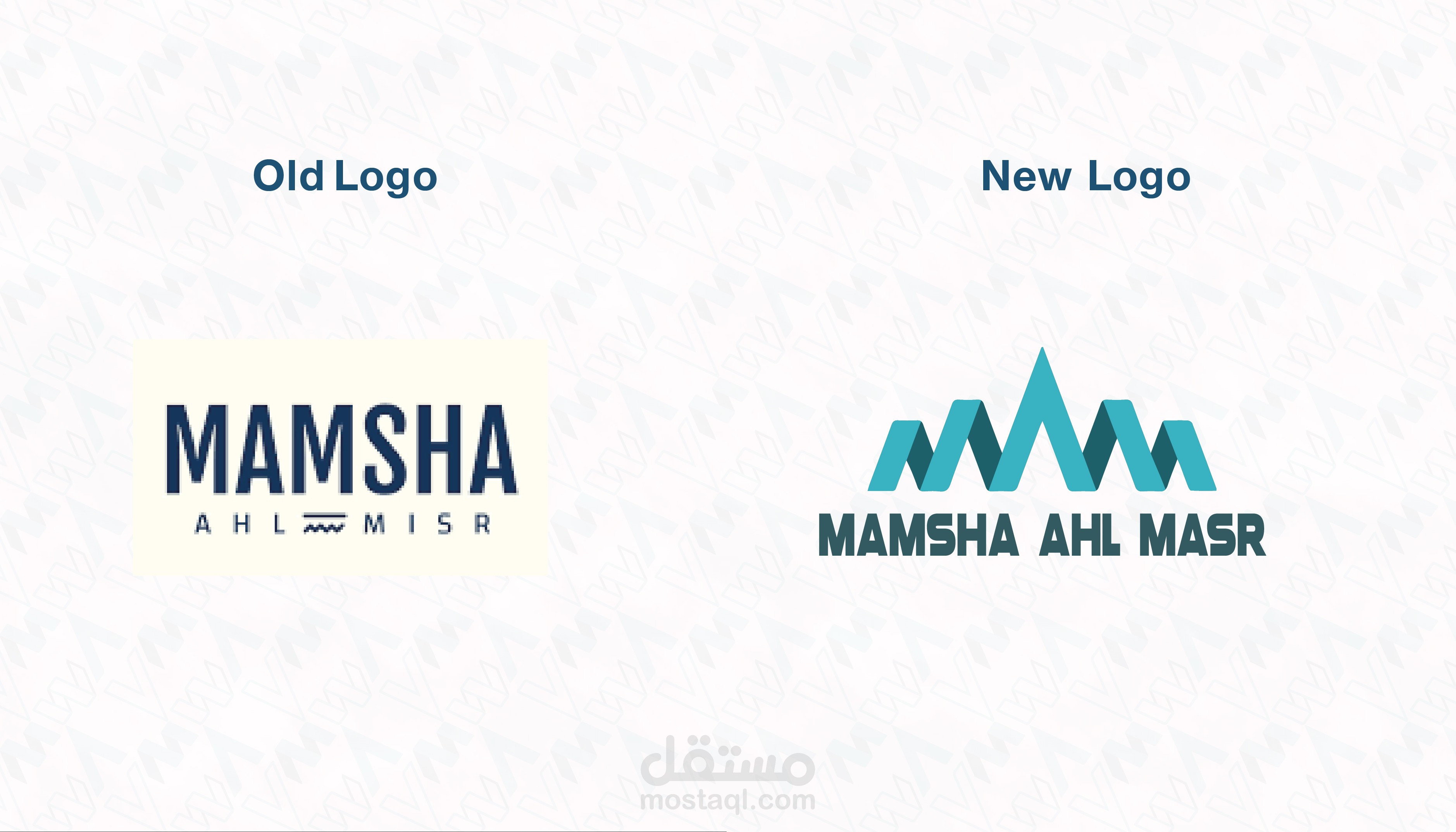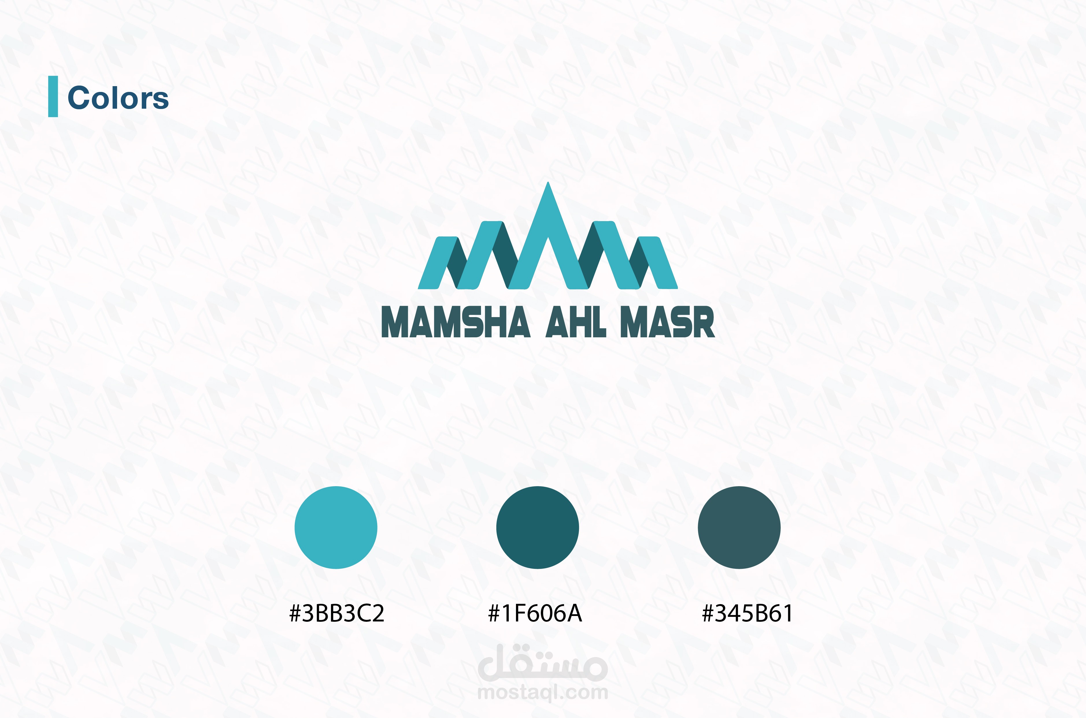 الشعار: تصميم شعار بسيط وحديث يمثل الممشى، يمكن أن يتضمن عناصر مستوحاة من نهر النيل، كأمواج المياه أو أشكال مستوحاة من النباتات النيلية، أو خطوط تمثل التدفق والانسيابية.