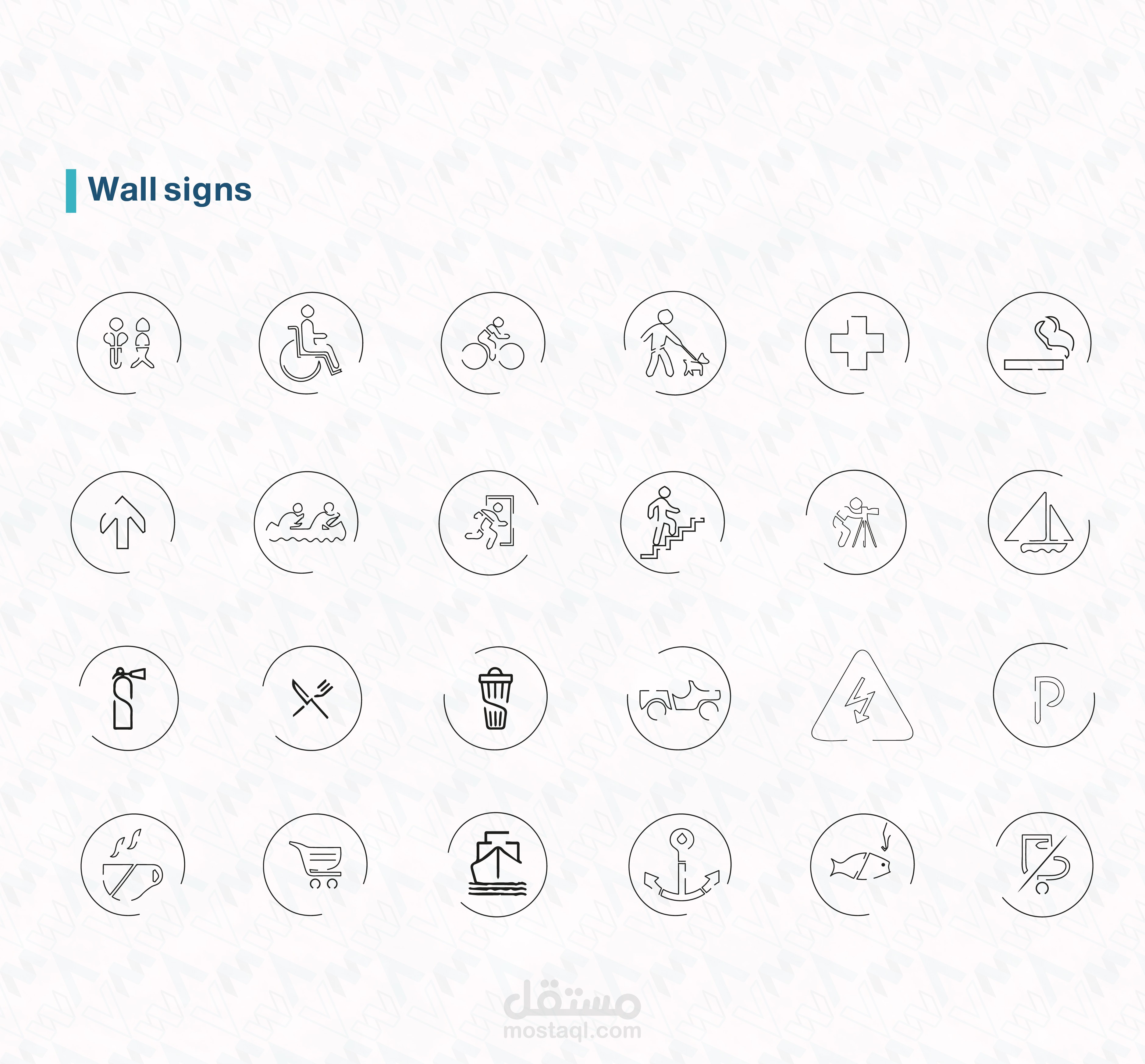 الخطوط: استخدام خطوط واضحة ومباشرة، مناسبة للقراءة من مسافة بعيدة، بحيث تكون بسيطة وعصرية لتعزز سهولة الوصول إلى المعلومات.