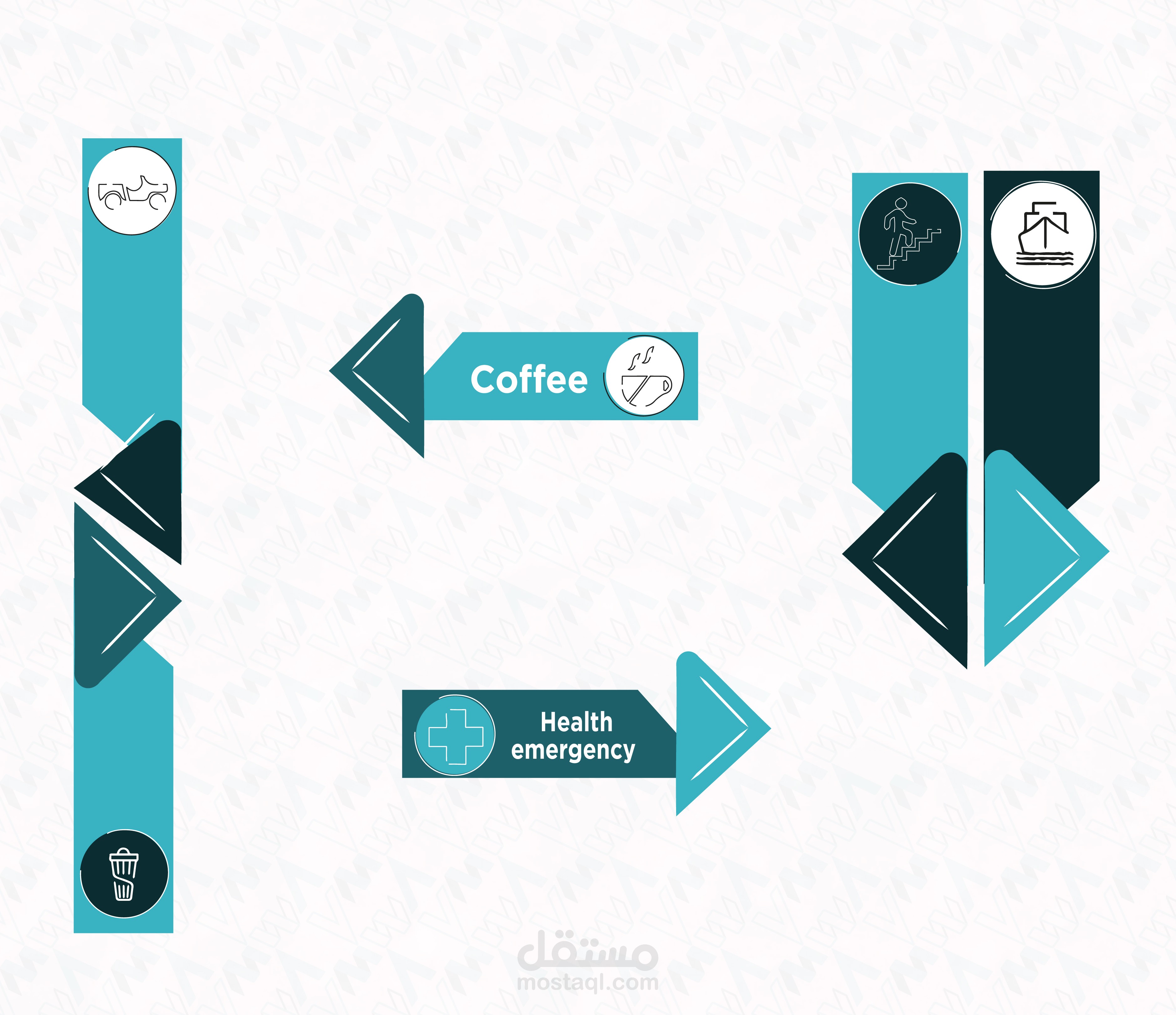 التسميات الأرضية: استخدام علامات أرضية أو بلاطات زخرفية لتوجيه الزوار بسهولة، حيث توضع رسومات أو أيقونات على الأرضية تشير إلى المسار أو الاتجاهات.