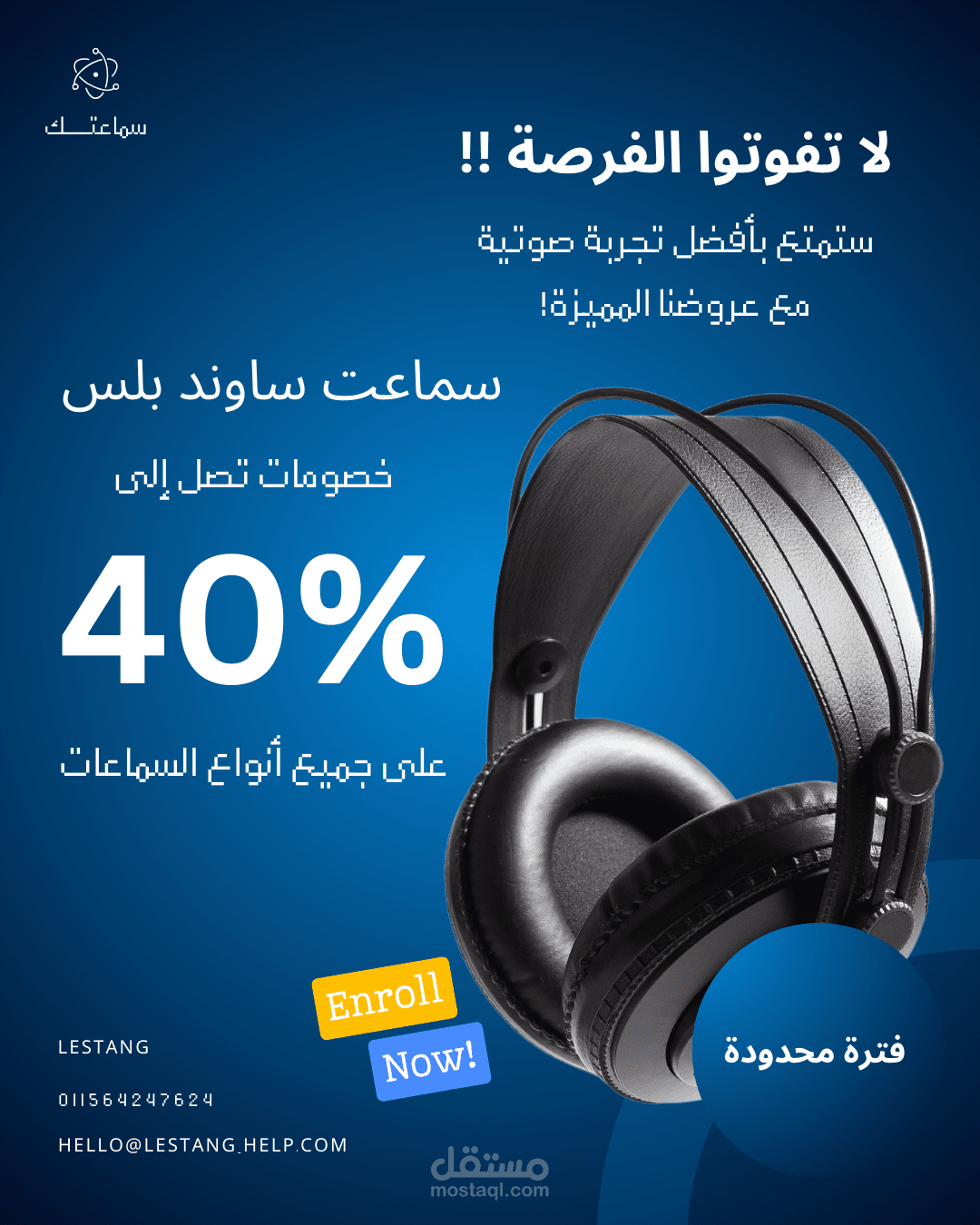 تم طلب هذا التصميم من قبل أحد العملاء عبر جروب متخصص على فيسبوك، حيث يبحث عن مصمم موهوب يستطيع تلبية احتياجاته في تصميم محتوى جذاب لحملة تسويقية لسماعات لاسلكية جديدة .