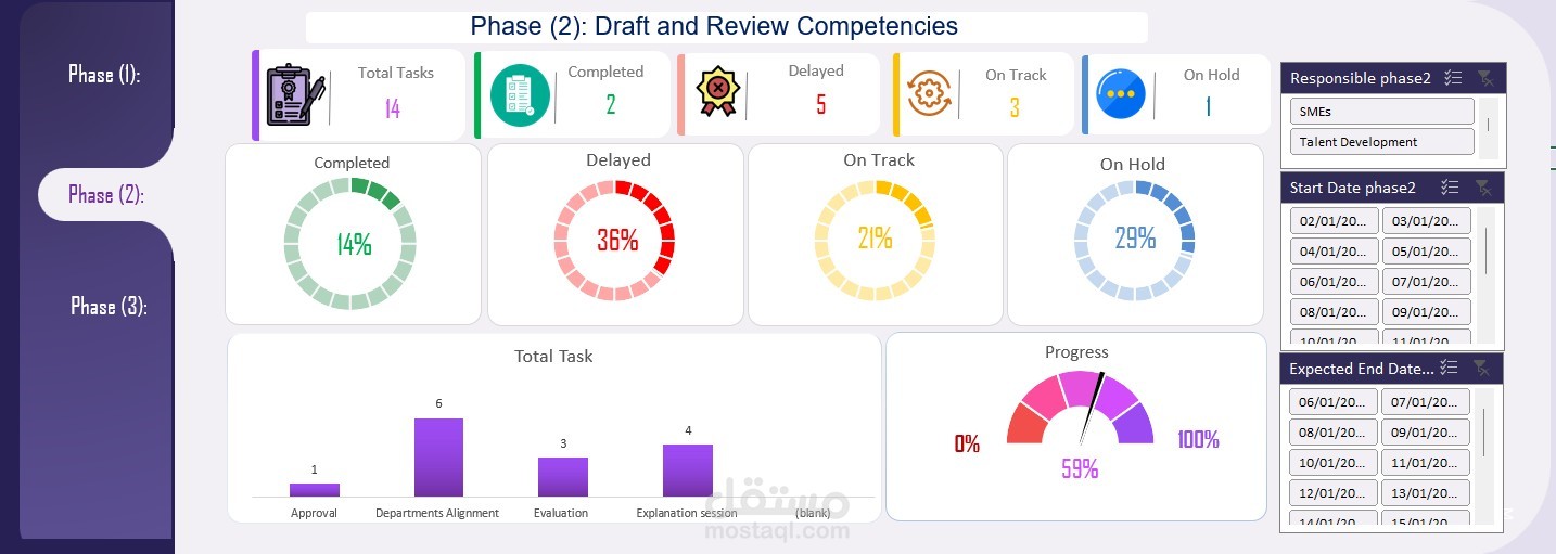 قمت بعمل داشبورد لتحليل ومتابعة المشاريع على ثلاثة مراحل وكل داشبورد خاصة بعرض مرحلة معينة.
