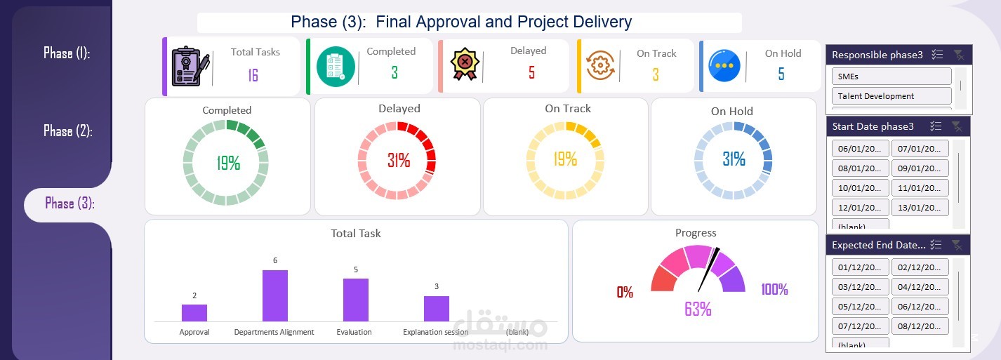 داشبورد لعرض مراحل المشروع بأستخدام Excel