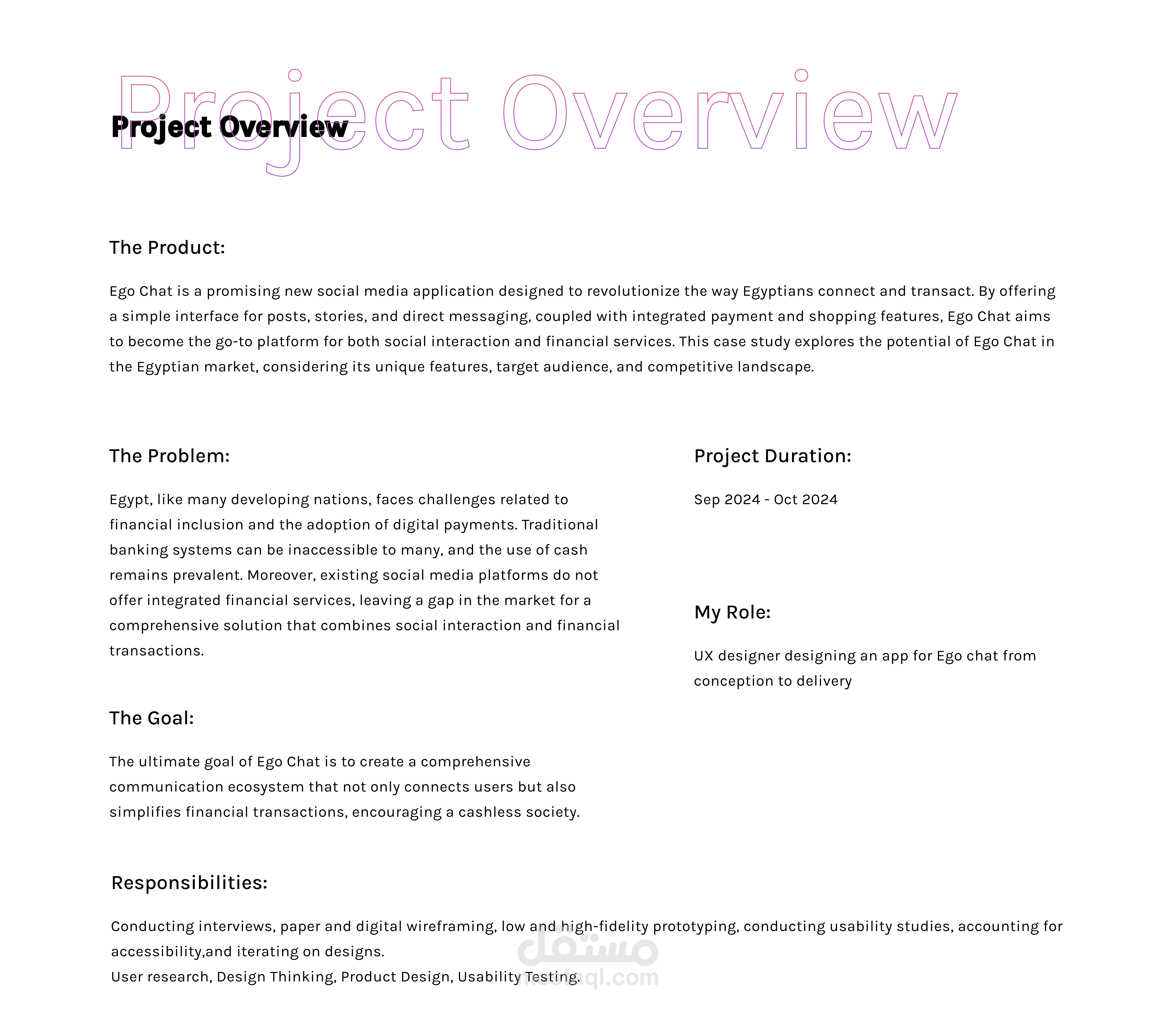 Ego Chat هو تطبيق مصري مبتكر يهدف إلى دمج ميزات التواصل الاجتماعي مع خدمات مالية يومية، في تجربة استخدام موحّدة وسلسة.