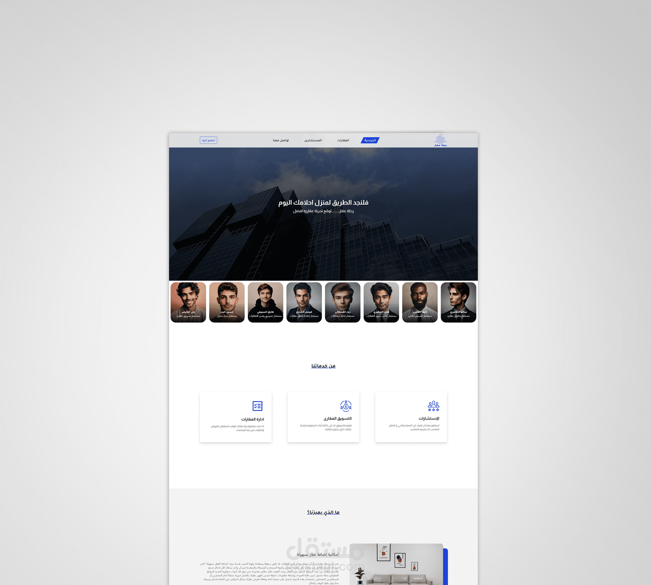 موقع عقارات بتصميم جذاب مع انميشن وحركه جميله يمكنك الاطلاع عليها في الفيديو المرفق ادناه, تم تطوير ثيم ووردبريس خاص ليتناسب مع الموقع بإستخدام HTML, CSS, JavaScript, PHP, WordPress الموقع به نظام بحث وفلتره عميقه وقويه