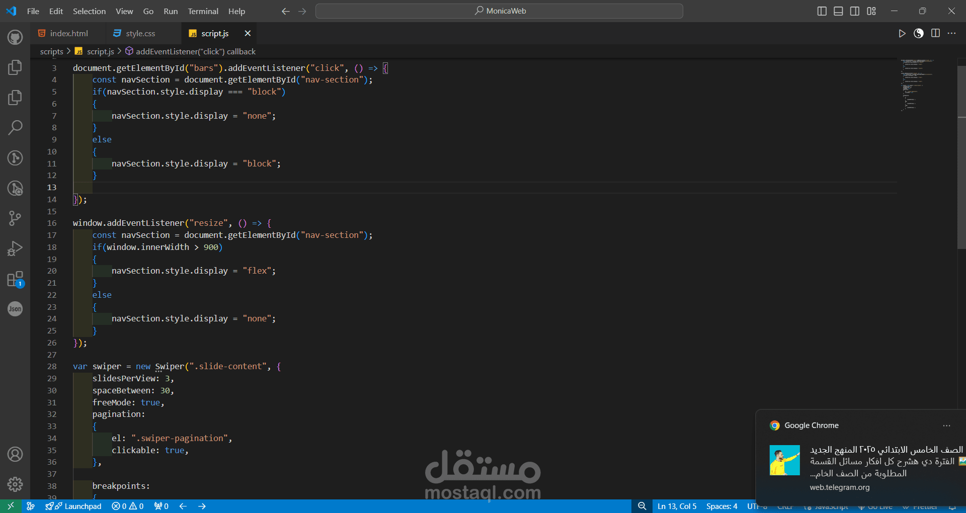 JavaScript: لإضافة التفاعلية وتحسين تجربة المستخدم.