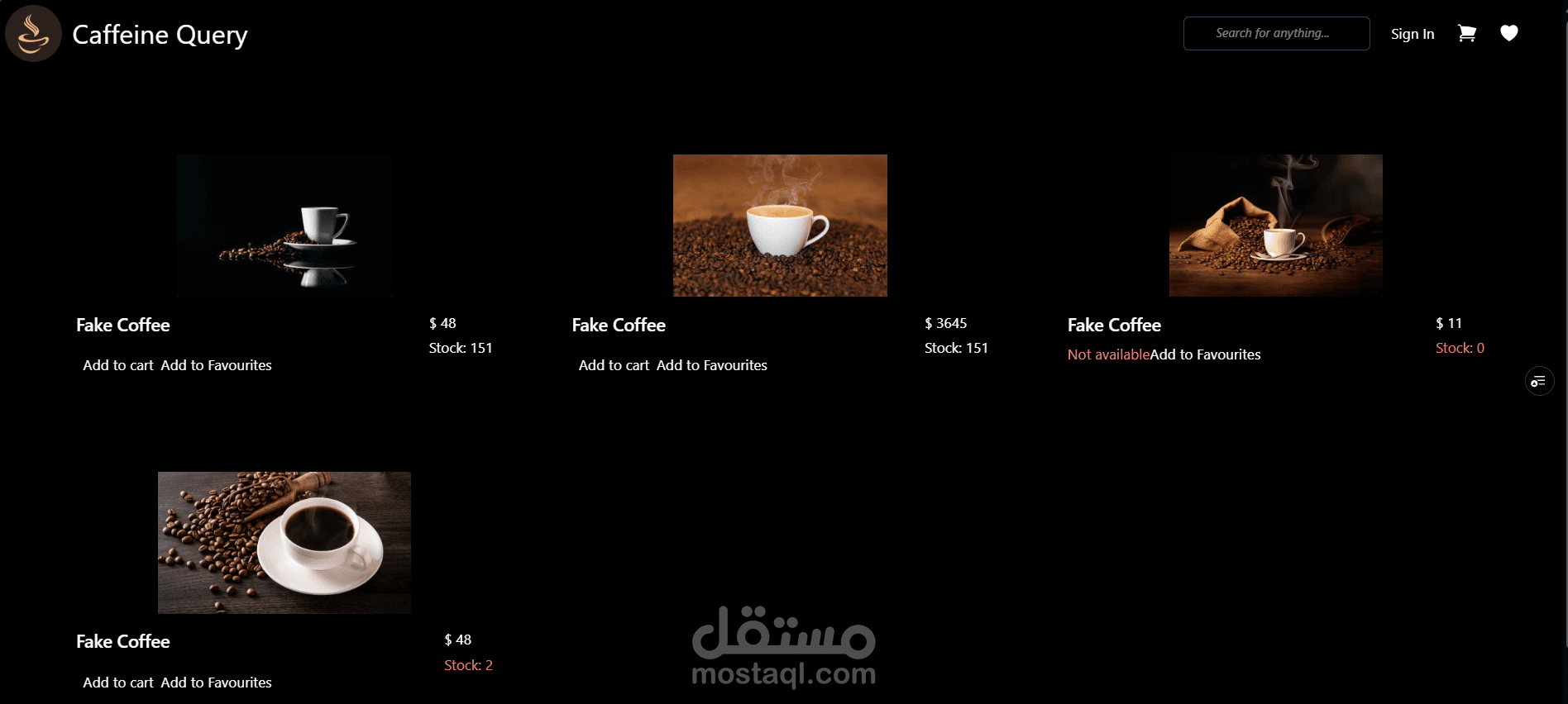 A full-featured coffee eCommerce platform built using React, TypeScript, Tailwind CSS, and Firebase, designed exclusively for coffee enthusiasts. This application provides a seamless shopping experience with dedicated pages for customers to browse and purchase various coffee products, from beans and grounds to brewing equipment. The platform also includes an Admin Dashboard for managing inventory, vendors, and orders, and a Vendor Panel where coffee suppliers can list and manage their products. With a sleek, responsive UI and real-time data handling via Firebase, this coffee-focused eCommerce site is optimized for both desktop and mobile users, ensuring smooth and enjoyable browsing and management experiences for all users.