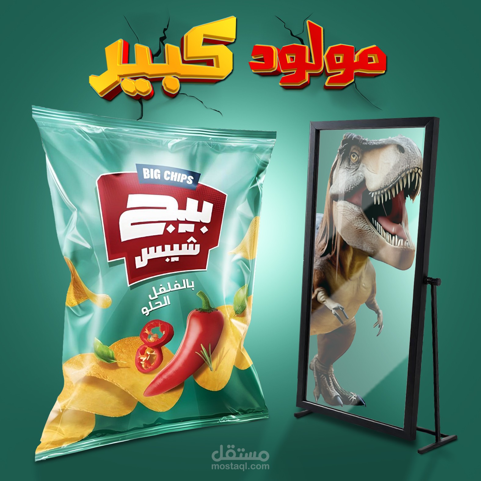 فكرة تصميم اعلانية لبراند بيج شبيس