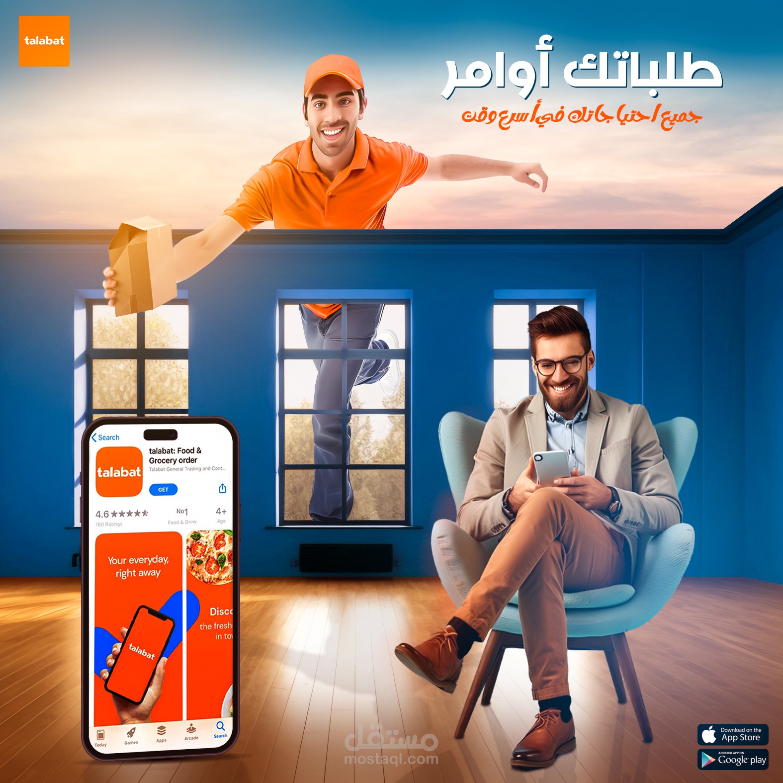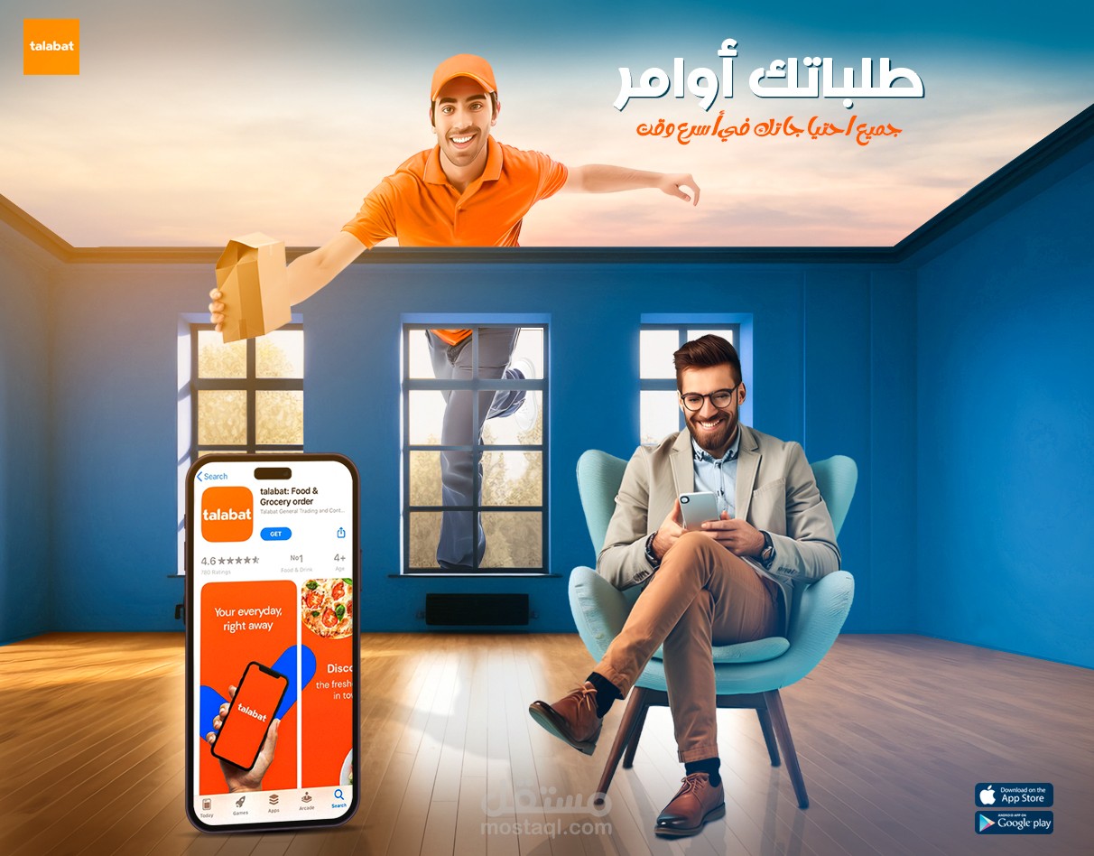 فكرة اعلانية لابلكشين طلبات الغرض من التصميم توضيح سرعة التوصيل