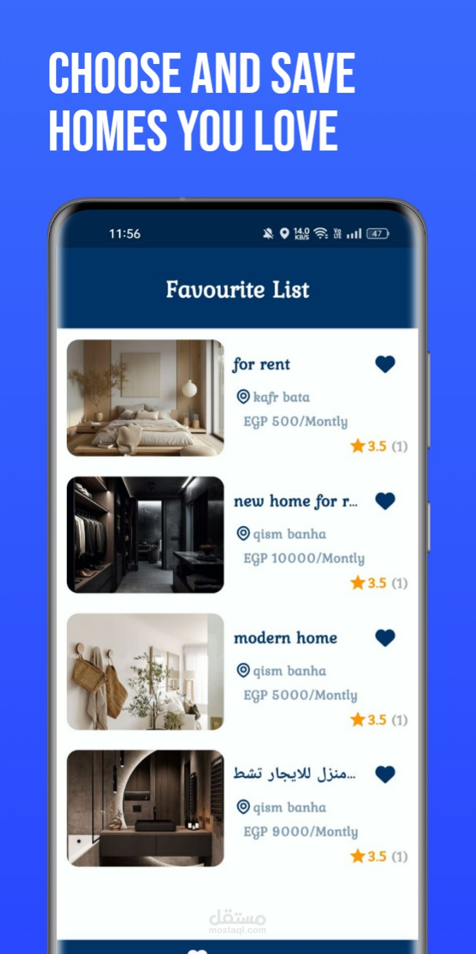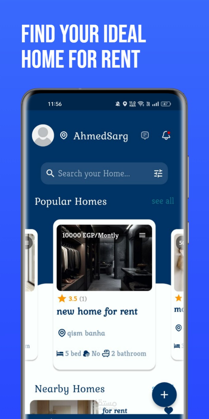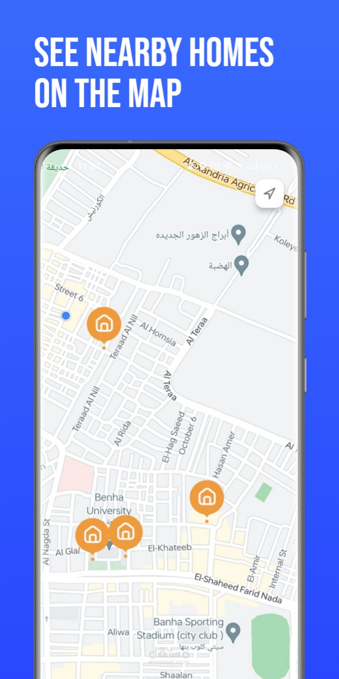 - يُسهّل التطبيق عملية حجز المنازل من خلال عرض جميع المنازل القريبة على خريطة، ويتيح للمستخدمين إمكانية استئجار المنازل أو نشر منازلهم للإيجار بكل سهولة.