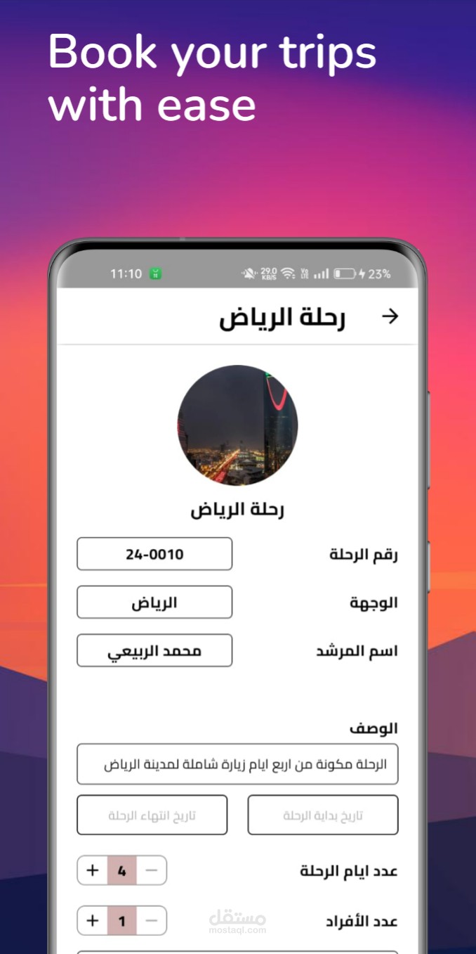 - يسهل التطبيق عملية حجز الرحلات الجوية، ويدعم ثلاثة أنواع من المستخدمين: المسافر، والشركة، ومدير التطبيق.