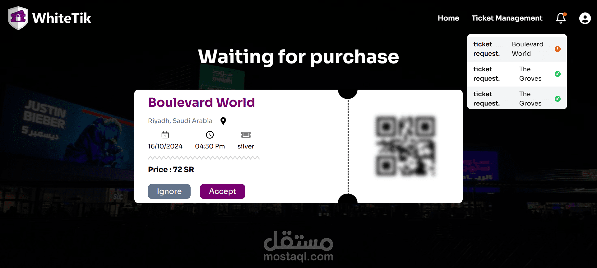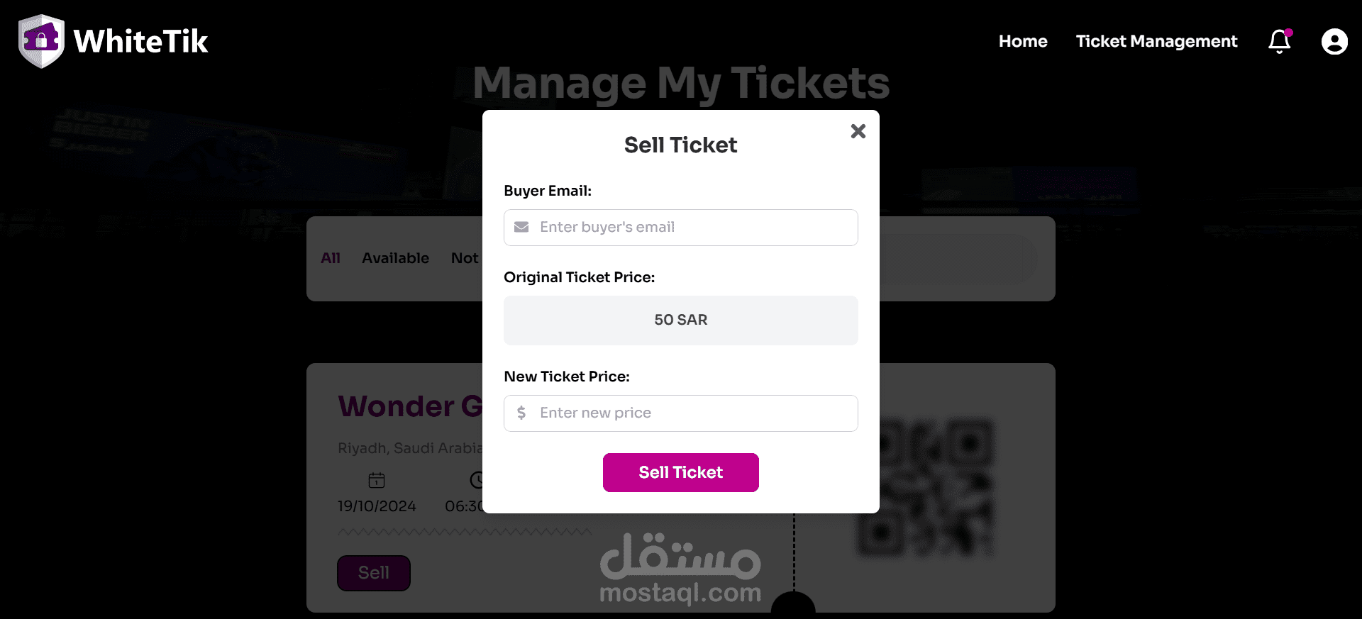 وصف المنصة: WhiteTik هي منصة مبتكرة لشراء وبيع التذاكر تهدف إلى محاربة الاحتيال والحد من السوق السوداء للتذاكر. تتيح المنصة للمستخدمين شراء تذاكرهم للفعاليات المختلفة، وكذلك إعادة بيعها في حال تعذّر عليهم الحضور.