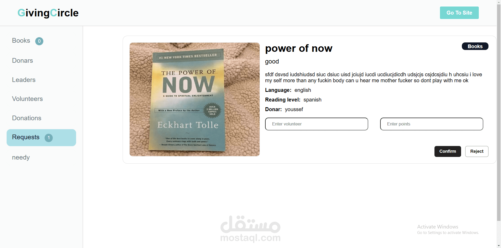 • Processed and managed donation requests, including point allocation for approval or rejection.
