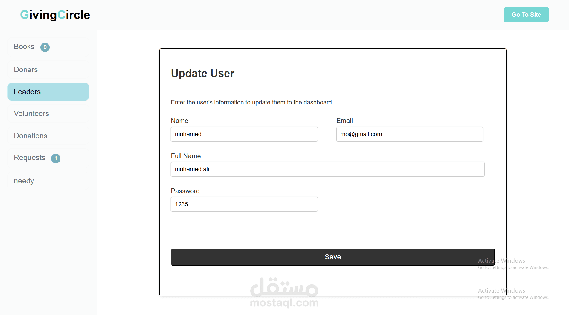 • Developed a comprehensive dashboard providing full control over the donation platform for administrators.