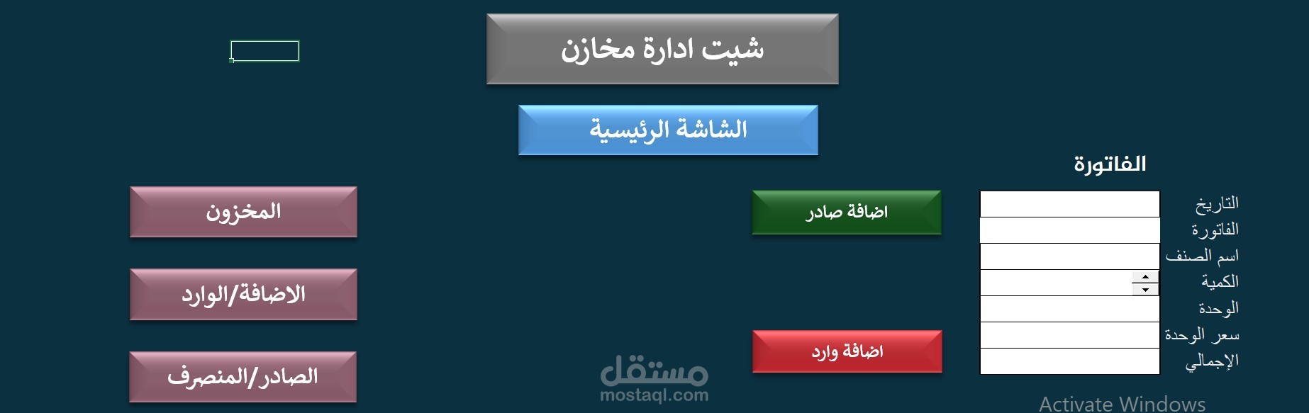 برنامج بسيط لادارة المخازن باستخدام الاكسل يتكون من اربع نوافذ