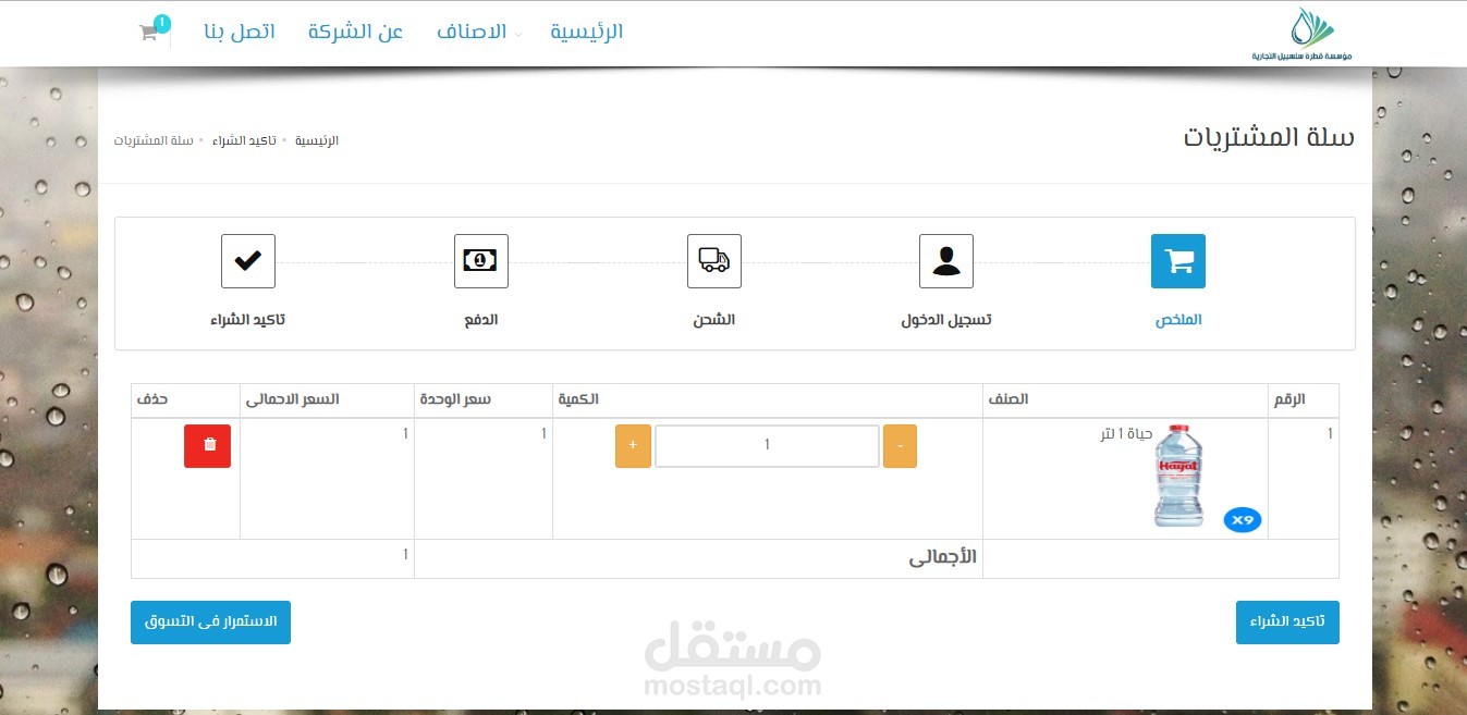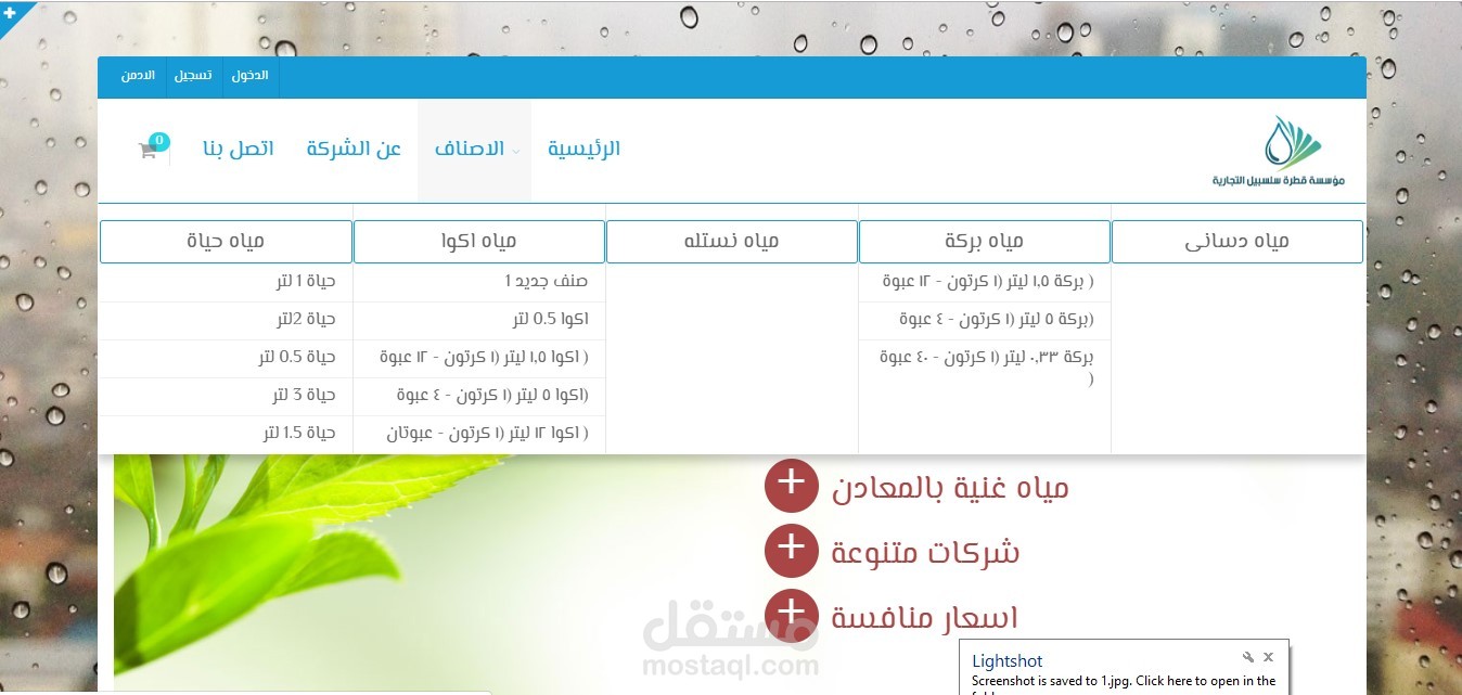 موقع ومتجر لشركة قطرة للمياه المعدنية