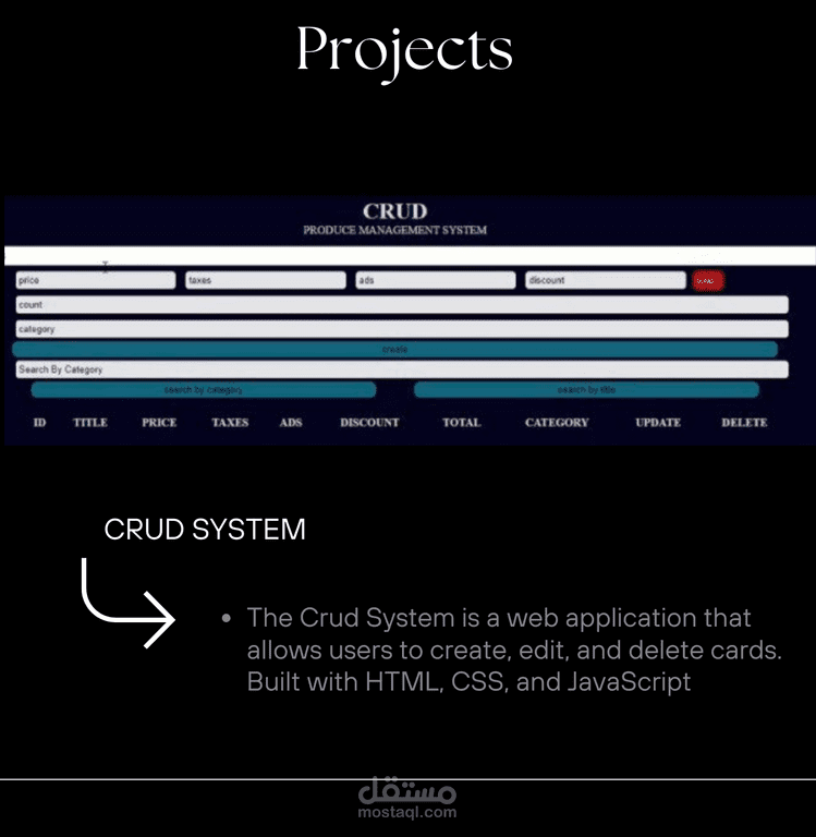 The Crud System is a web application that allows users to create, edit, and delete cards.