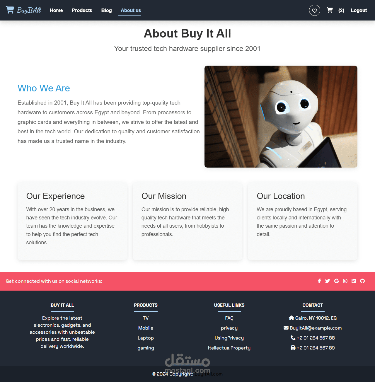 التقنيات المستخدمة: React، Context API، CSS Modules، Framer Motion، Bootstrap، Axios، وNode.js