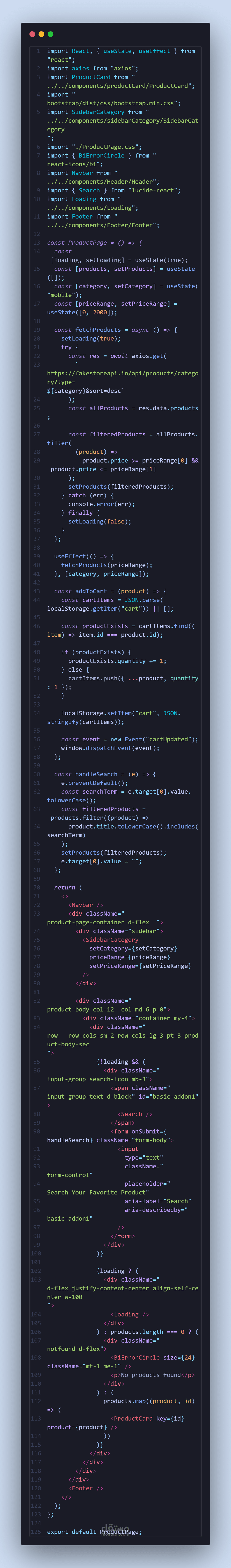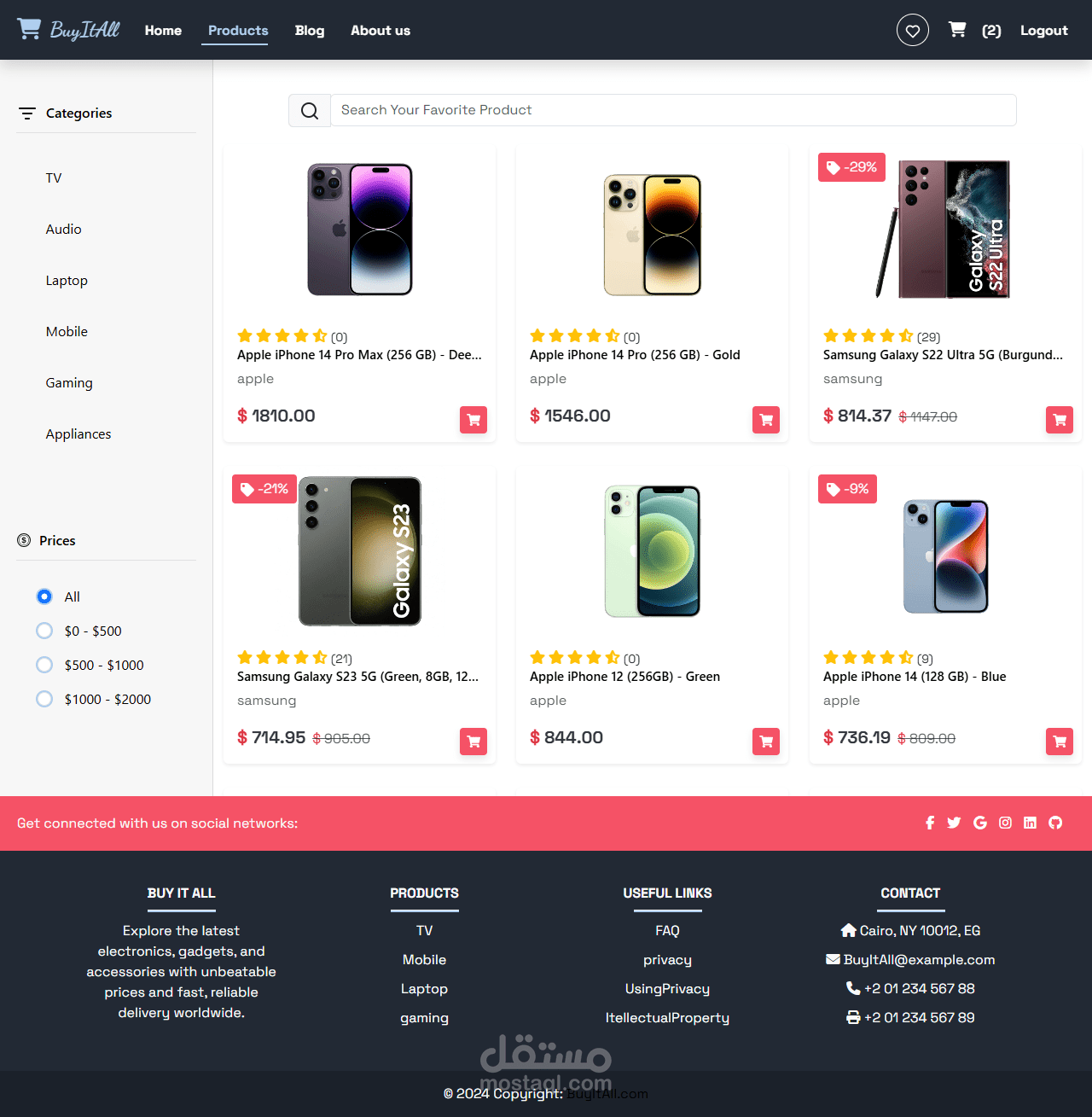 عرض المنتجات مع إمكانية التصفية