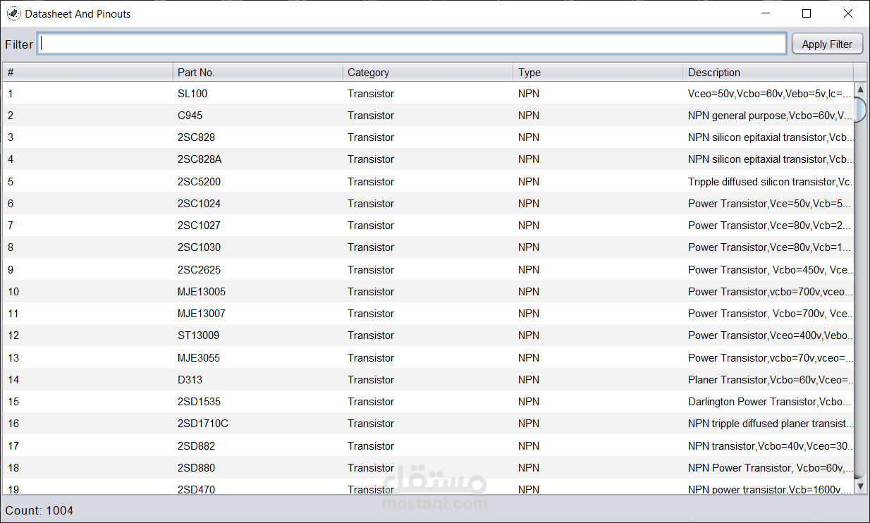 أداة تحتوي على القطع الإلكترونية الأكثر شيوعاً مع الوصف لكل قطعة وصورة