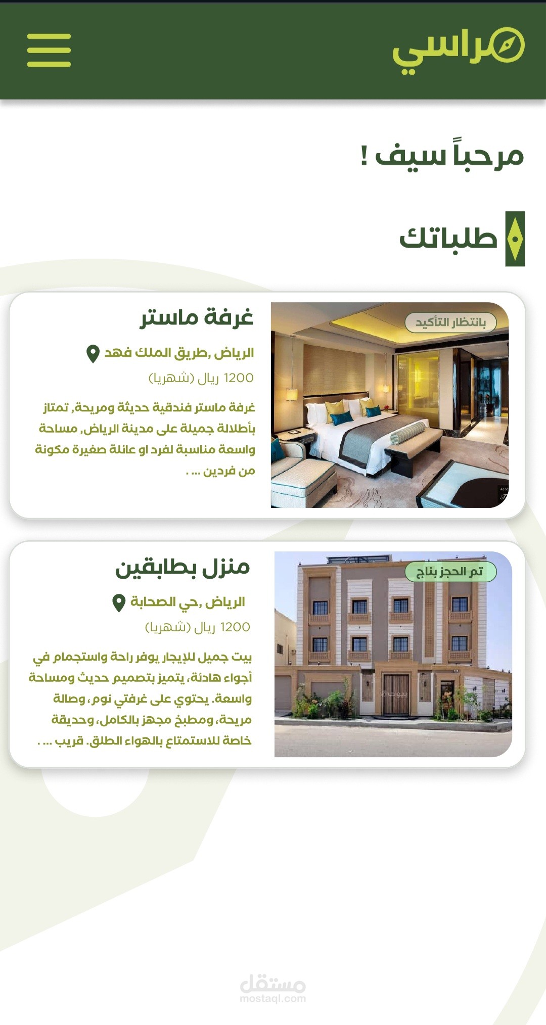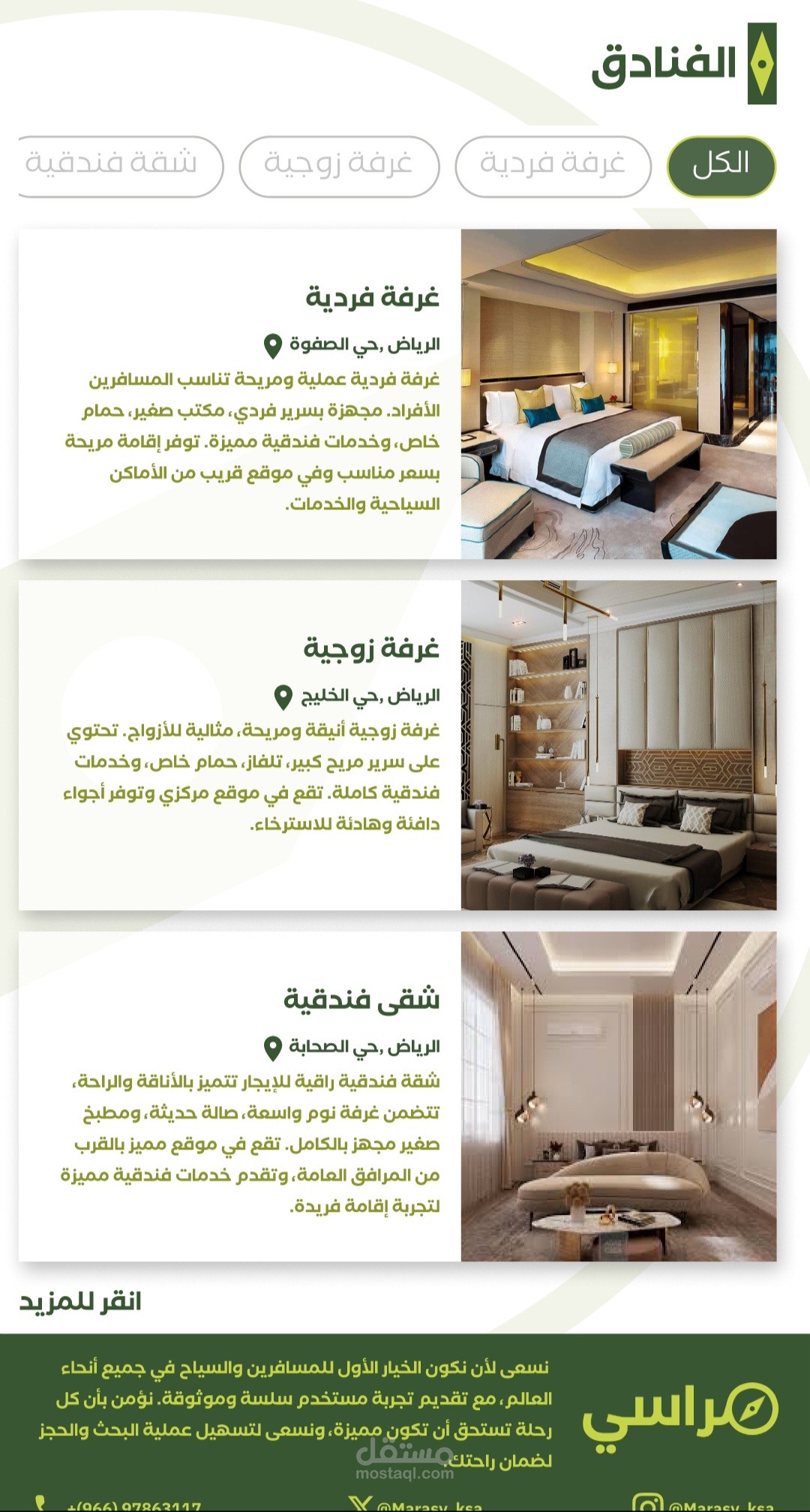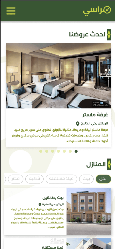 منصة "مراسي" هي الحل الأمثل لتأجير الفنادق والمنازل، تهدف إلى تقديم تجربة فريدة للمستخدمين الباحثين عن أماكن إقامة مريحة وآمنة. مستوحى من كلمة "مرسى" التي تعكس مفهوم الاستقرار والراحة، يسعى "مراسي" إلى توفير خيارات متنوعة تناسب جميع الأذواق والاحتياجات.