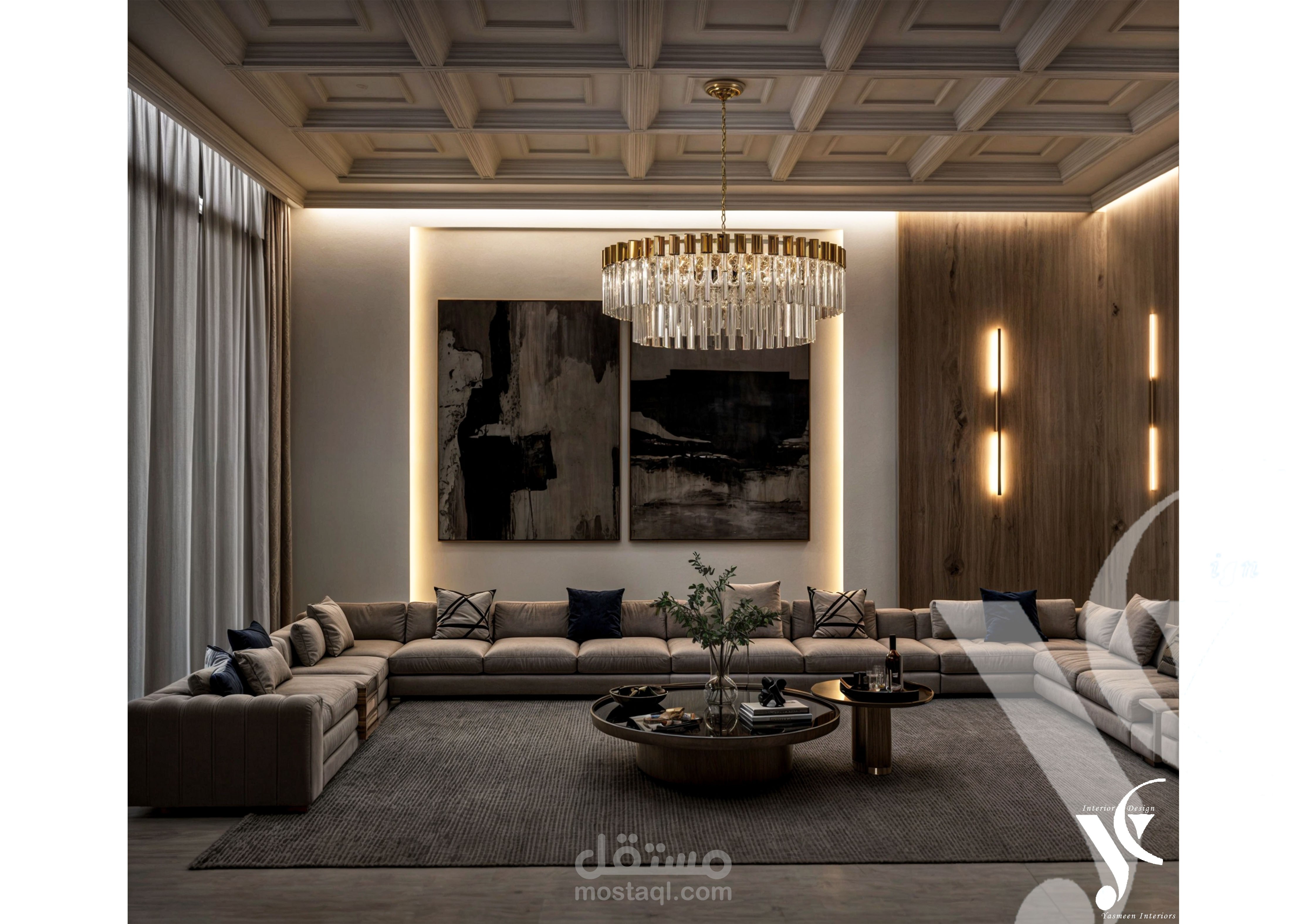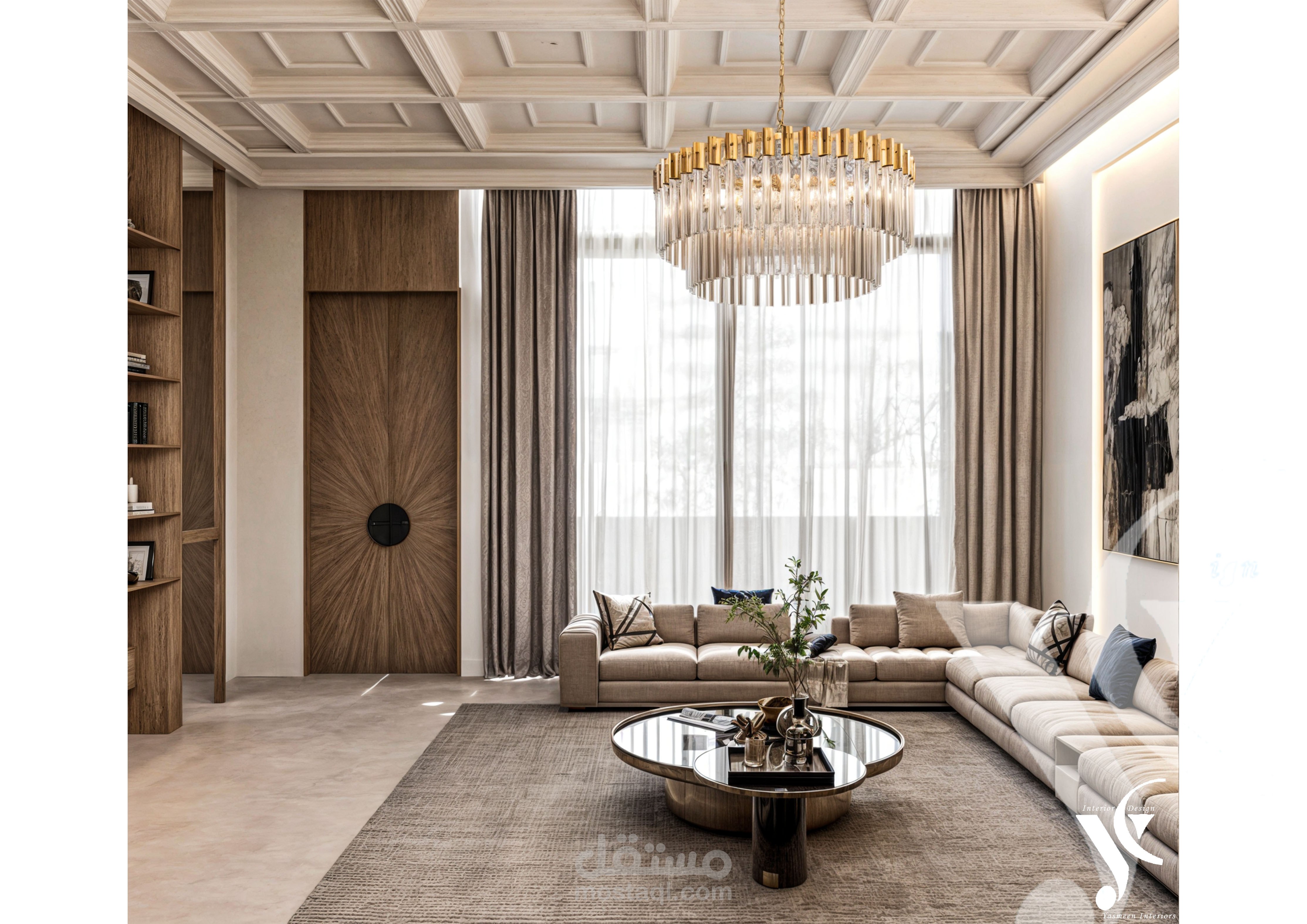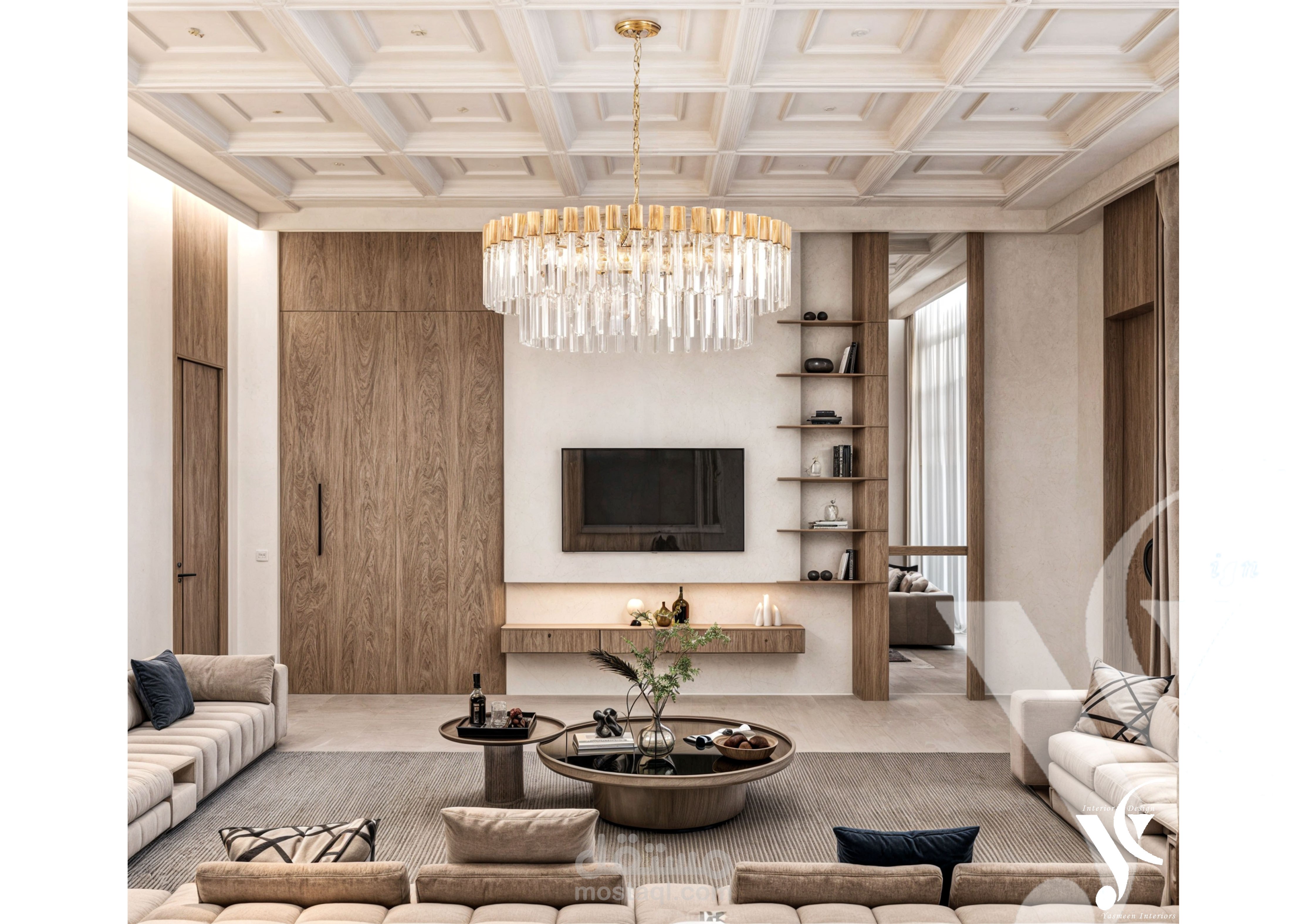 طلبت العميلة تصميمًا بوهيميًا باستخدام الخشب المعتق الغامق مع سقف كلاسيكي، فقمنا بدمج الأسلوبين معًا ليظهر التصميم النهائي بتوازن رائع بين الطابع البوهيمي والكلاسيكي.