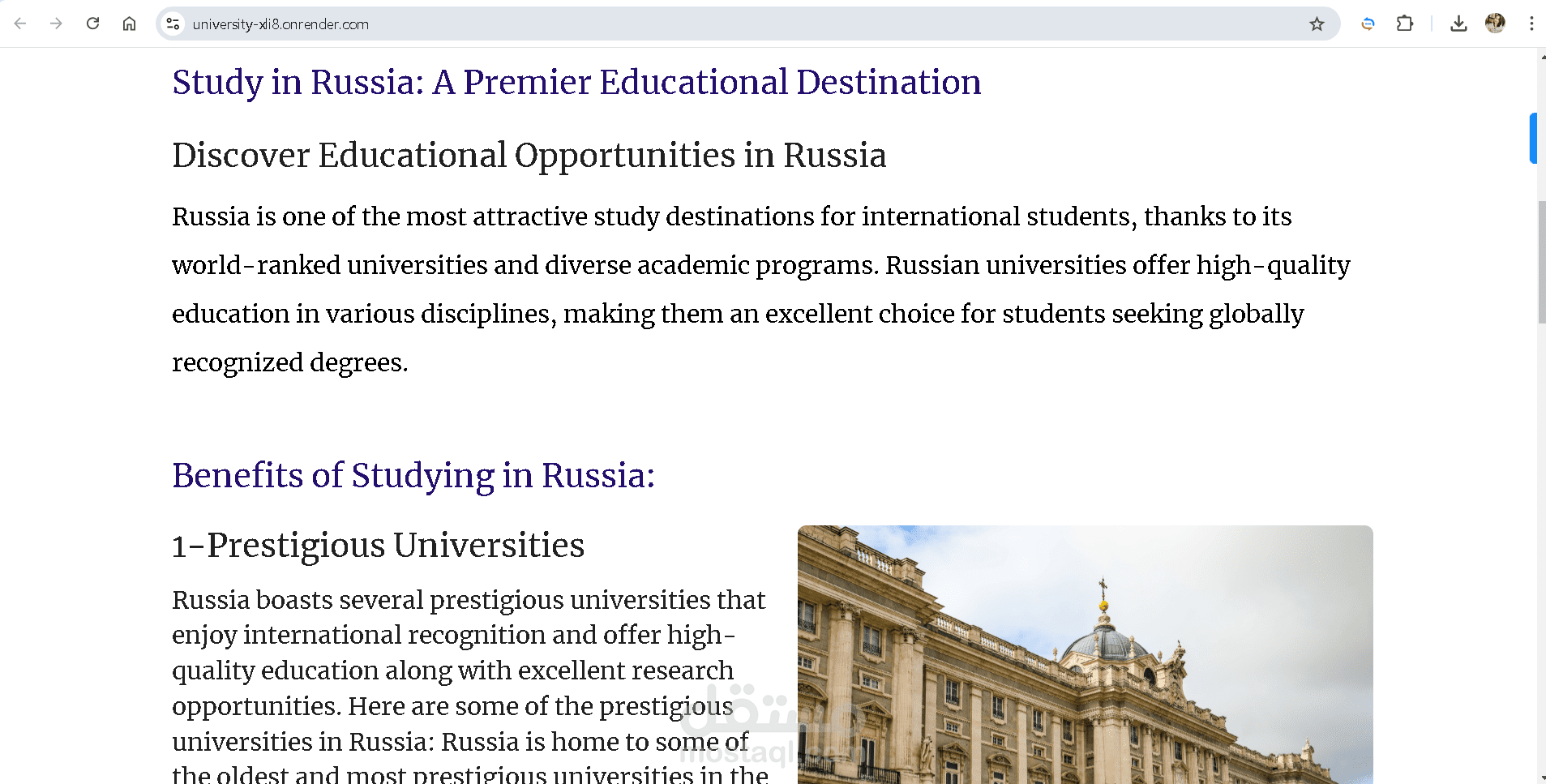 تطوير واجهة منصة تعليمية تفاعلية وسهلة الاستخدام باستخدام React وTailwind CSS، مما يضمن تجربة سلسة على مختلف الأجهزة. كما يوجد بها مكونات React لإنشاء عناصر واجهة ديناميكية وقابلة لإعادة الاستخدام، ودمجها مع واجهات برمجة التطبيقات الخاصة بالواجهة الخلفية (APIs) لتحقيق التكامل التام بين واجهات المستخدم والبيانات الخلفية.
