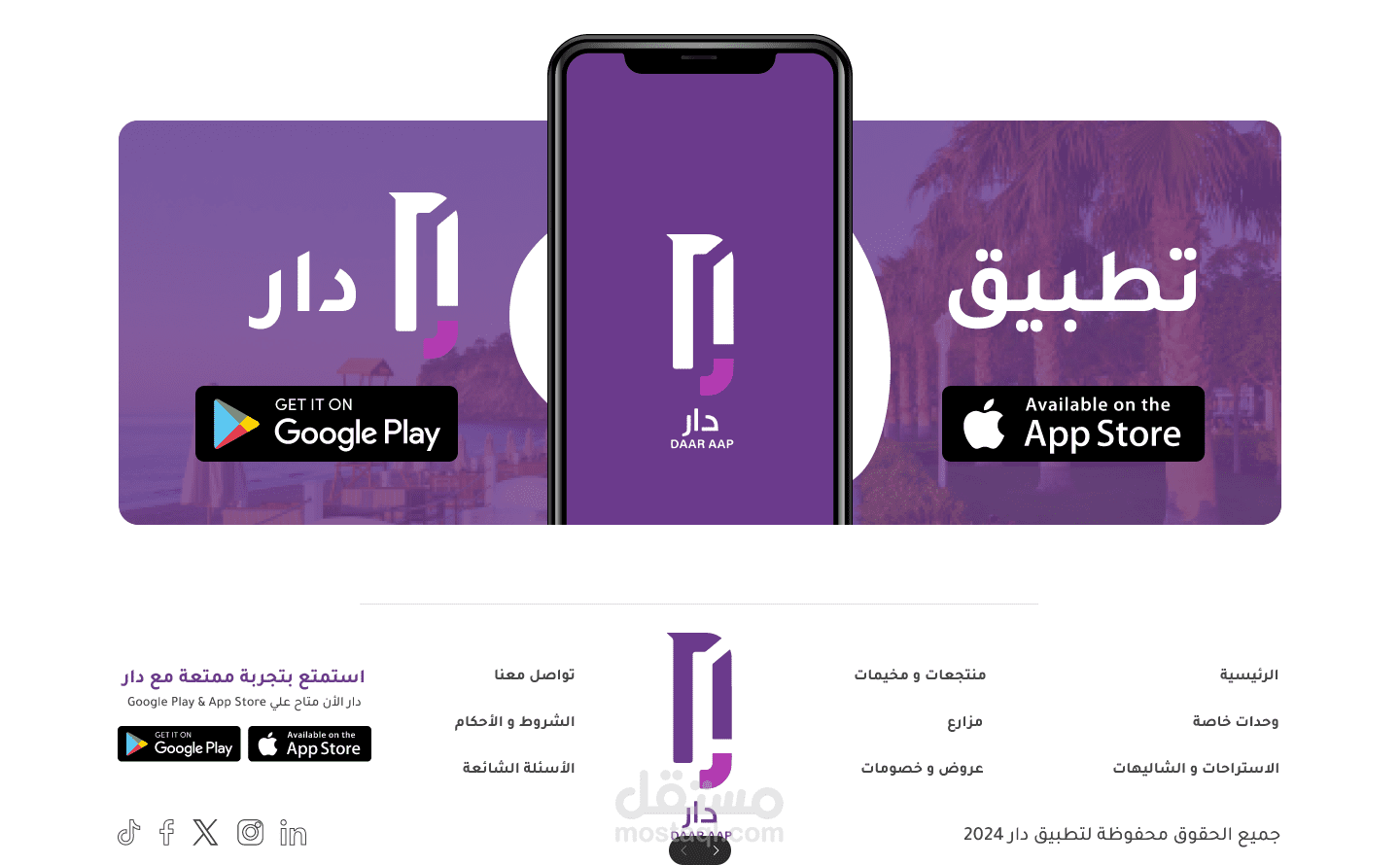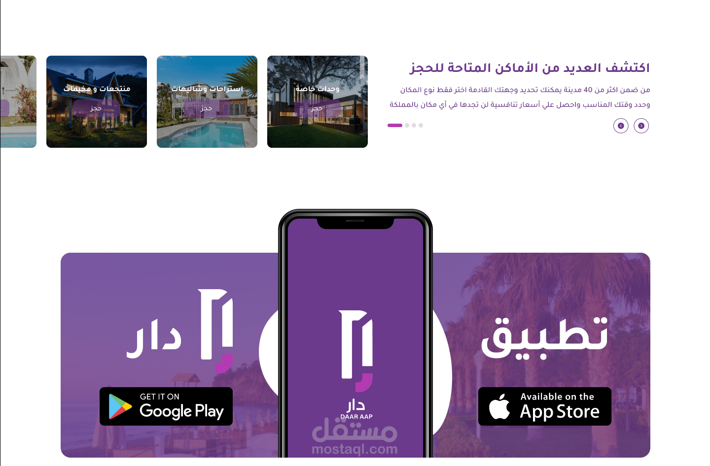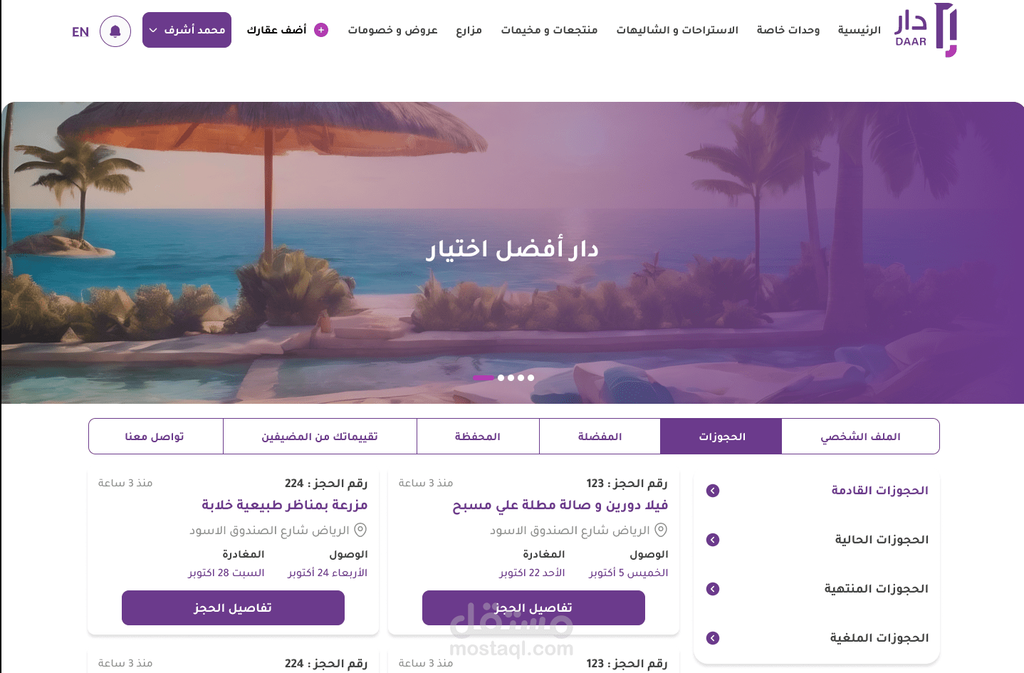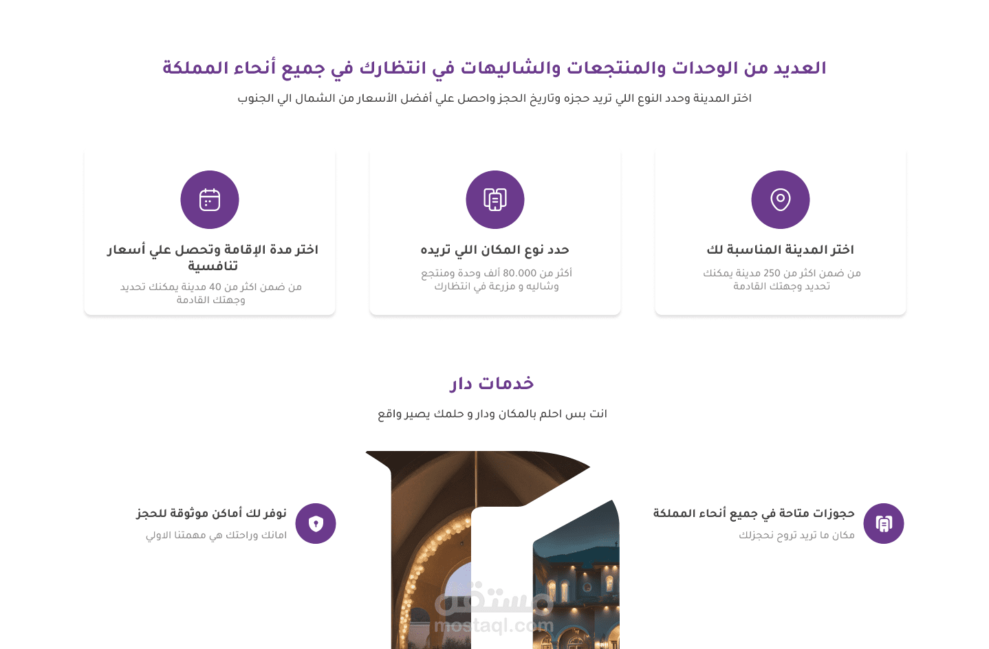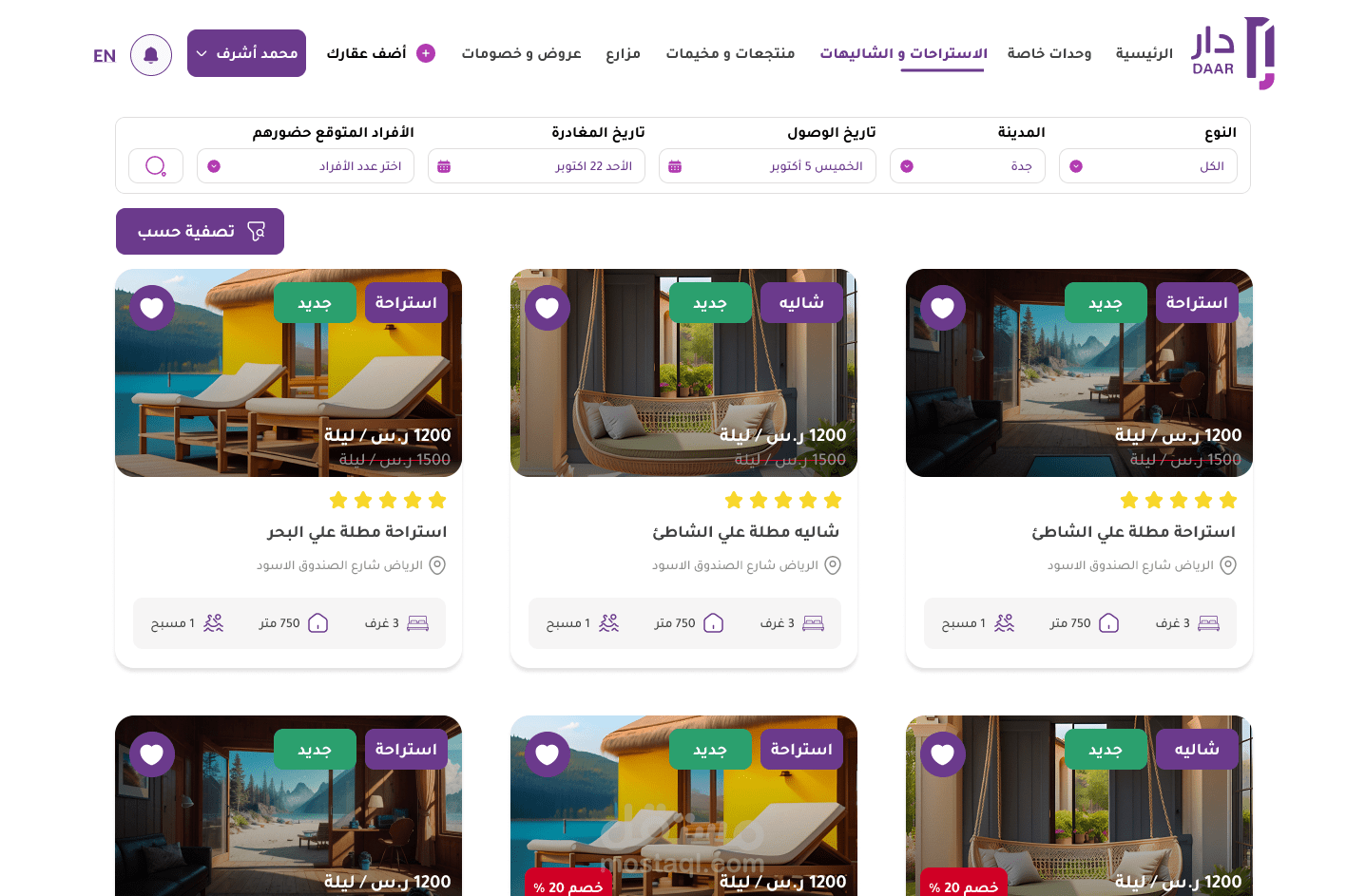 يتيح للمستخدمين استعراض العقارات والشاليهات والمزارع المتاحة، مع خيارات تصفية متقدمة حسب المدينة، نوع الوحدة، أو الميزانية.