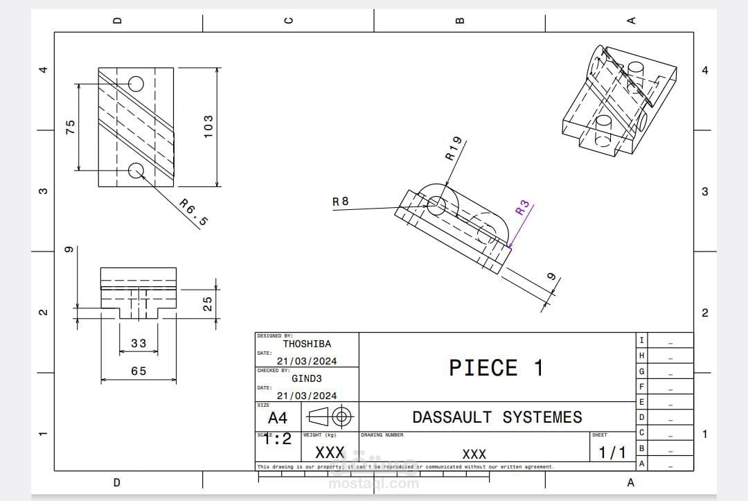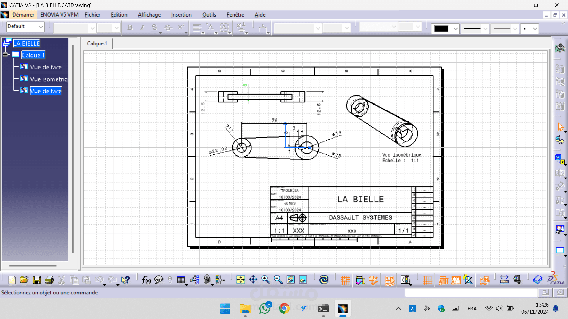 Ces pièces ont été fabriquées par CATIA V5 PRO. J'ai réalisé ces pièces à l'aide d'un ouvrage contenant les mesures et normes nécessaires. Je les réalisées dans le logiciel puis j'ai réalisé pour elles une fiche personnalisée portant les dimensions qui leur sont assignées pour les faire correspondre aux dimensions dans le dossier
