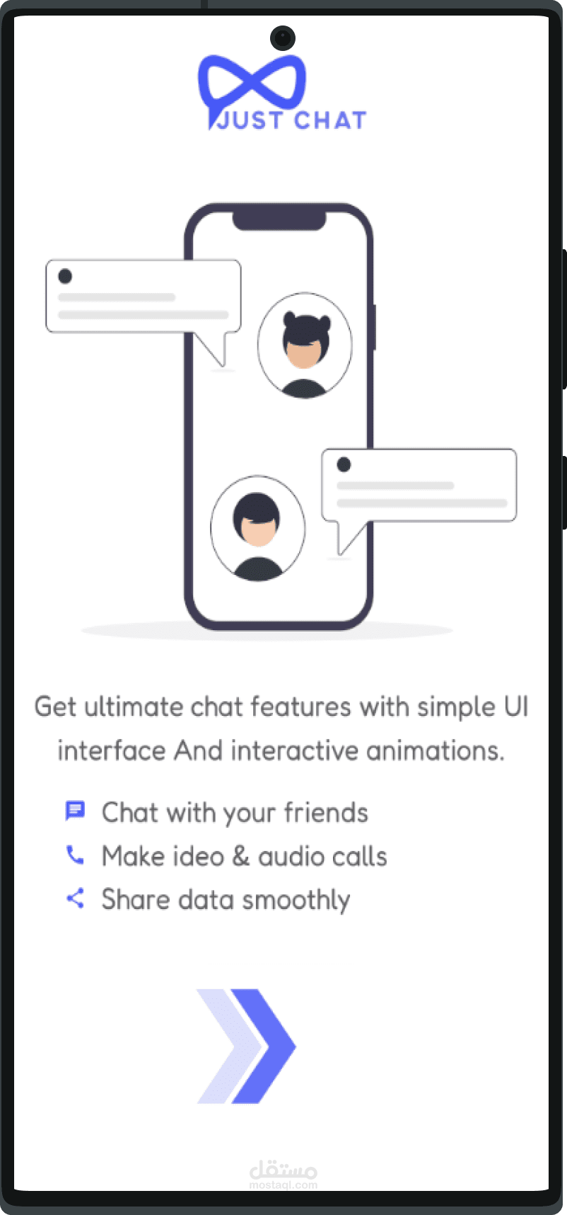 (Just-Chat) هو تطبيق مراسلة عصري بسيط يجمع العديد من الميزات الضرورية لتطبيقات المراسلة (رابط المعاينة يحتوي فيديو توضيحي) ومن هذه المميزات: