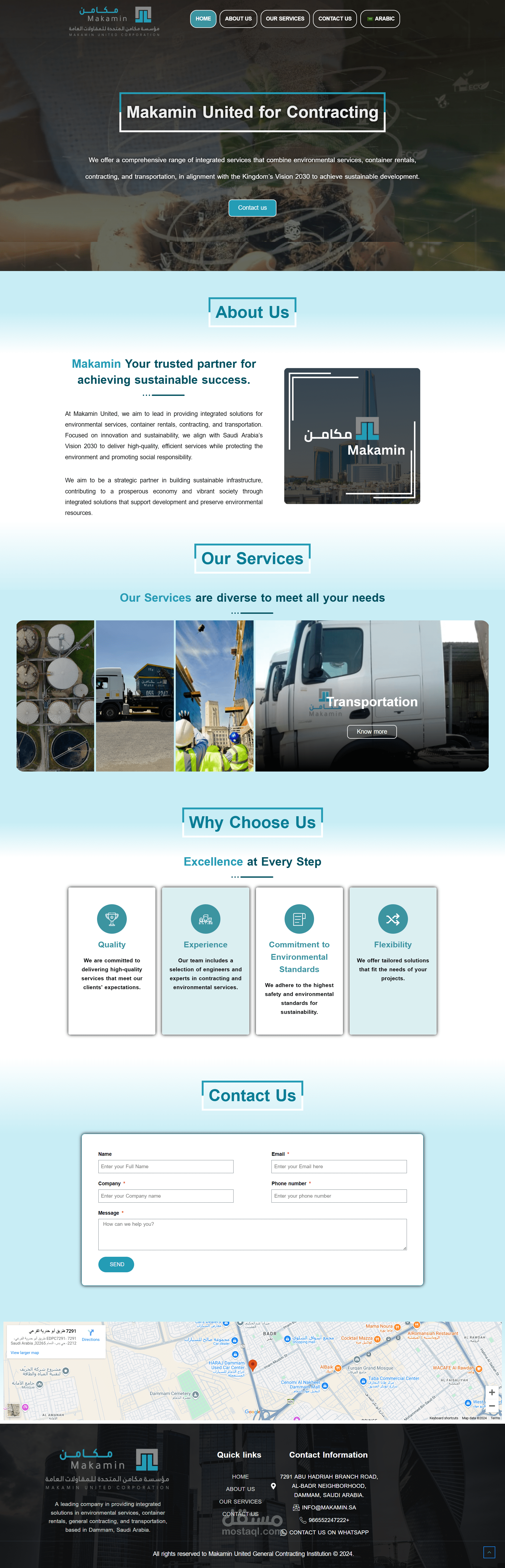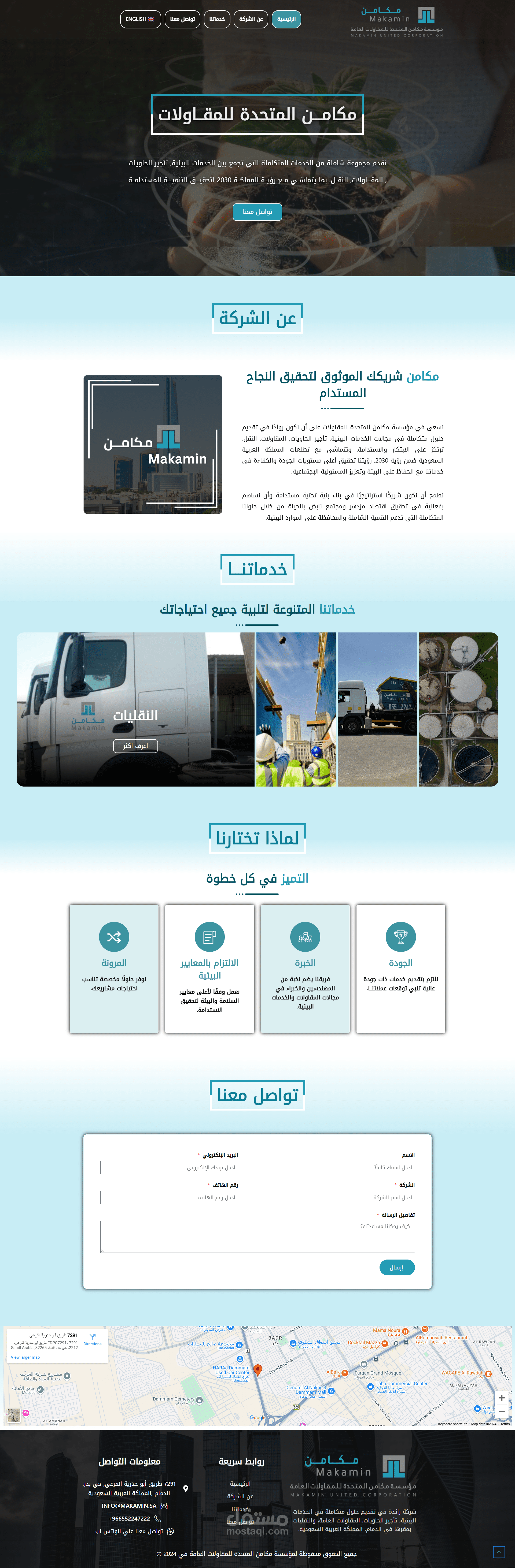 تم تصميم الموقع الإلكتروني لشركة مكامن المتحدة للمقاولات العامة ليعكس هويتهم البصرية ويلبي احتياجاتهم بدقة عالية. ويتكون الموقع من صفحة واحدة تشمل الصفحة الرئيسية، صفحة "من نحن"، صفحة الخدمات، وصفحة التواصل.