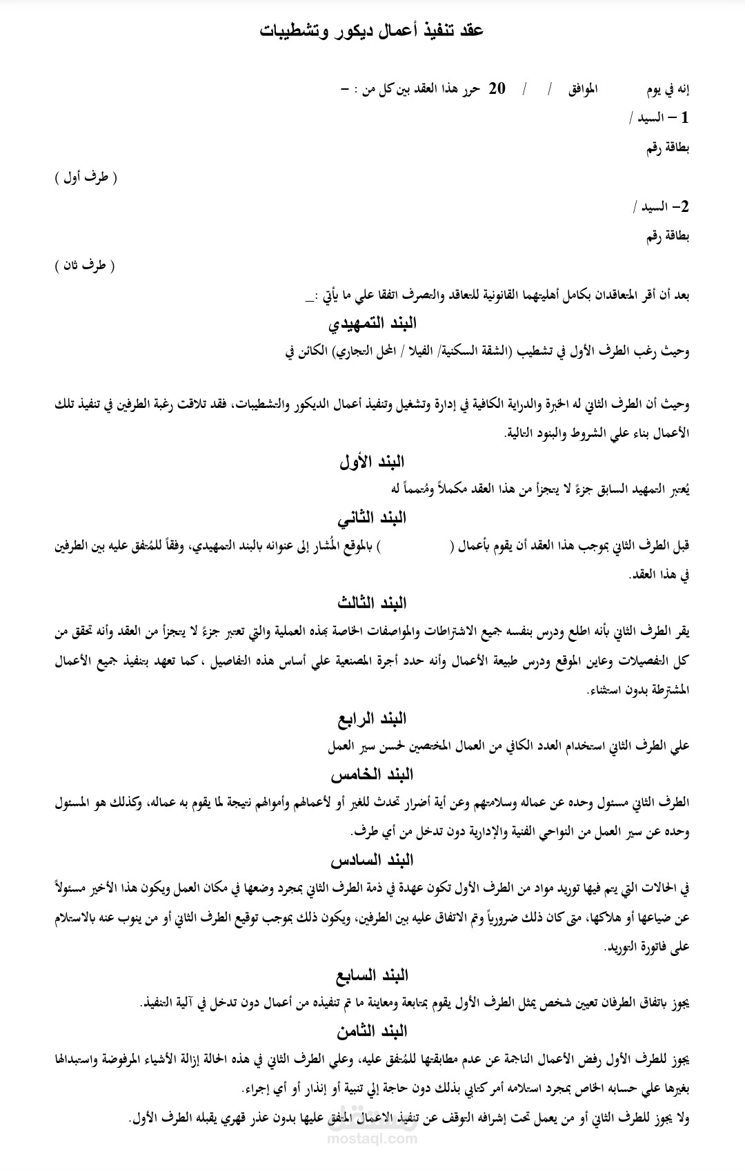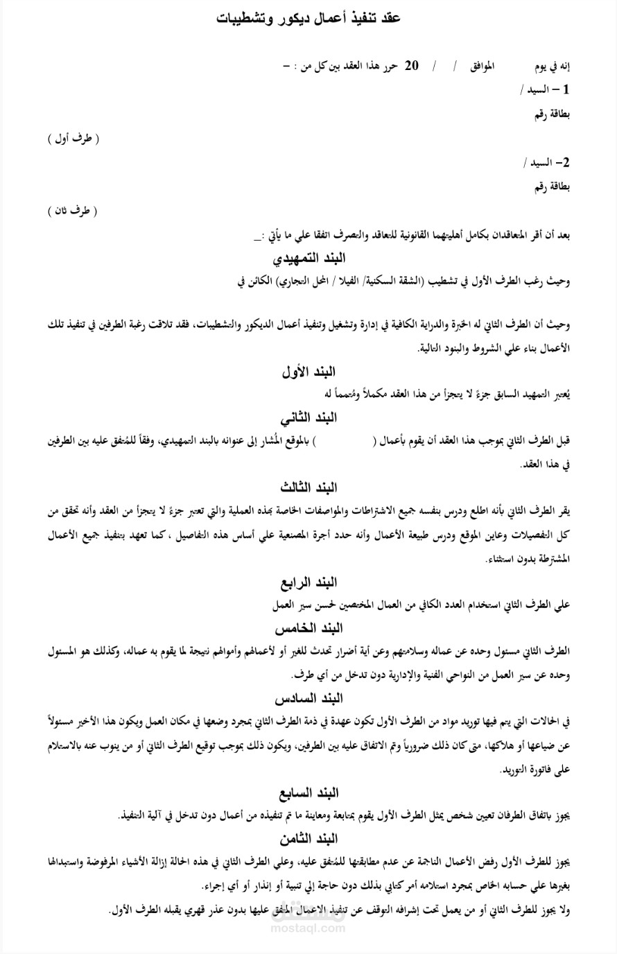 عقد تشطيب أعمال ديكور لصالح مكتب ديكور.