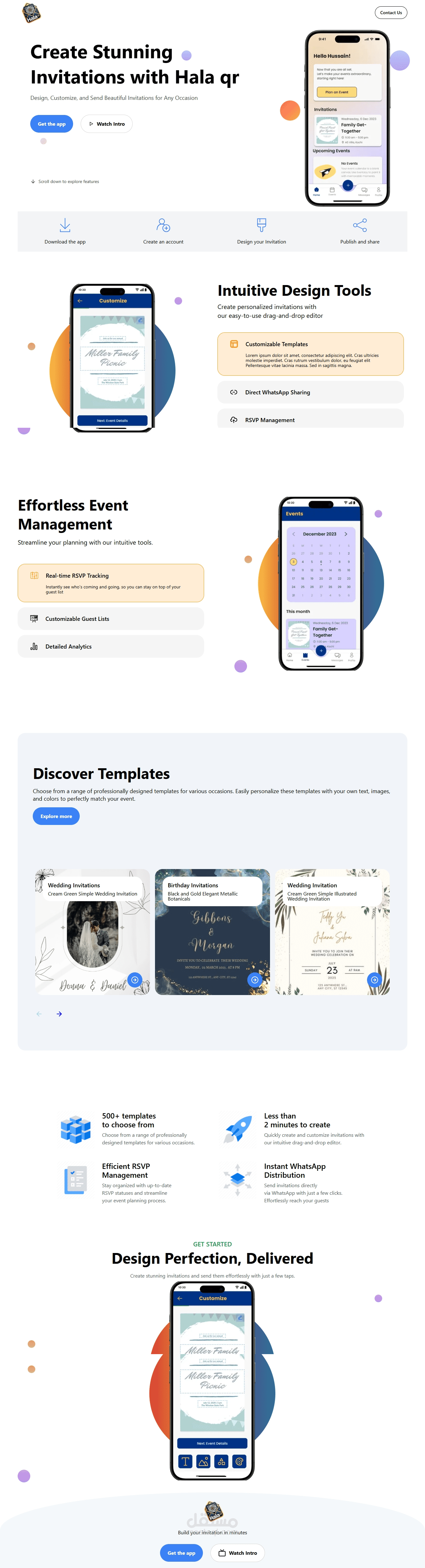 أما بالنسبة للبرمجة، فقد استخدمت React لإنشاء الموقع التعريفي للتطبيق، والذي يشرح مميزاته ويتيح للمستخدمين فهم طريقة الاستخدام بسهولة. وللتطبيق الأساسي الذي يُستخدم لإنشاء الدعوات، اعتمدت على Expo وReact Native لتطوير تطبيق مخصص للهواتف الذكية، مما يتيح للمستخدمين تجربة متميزة على أجهزتهم المحمولة.