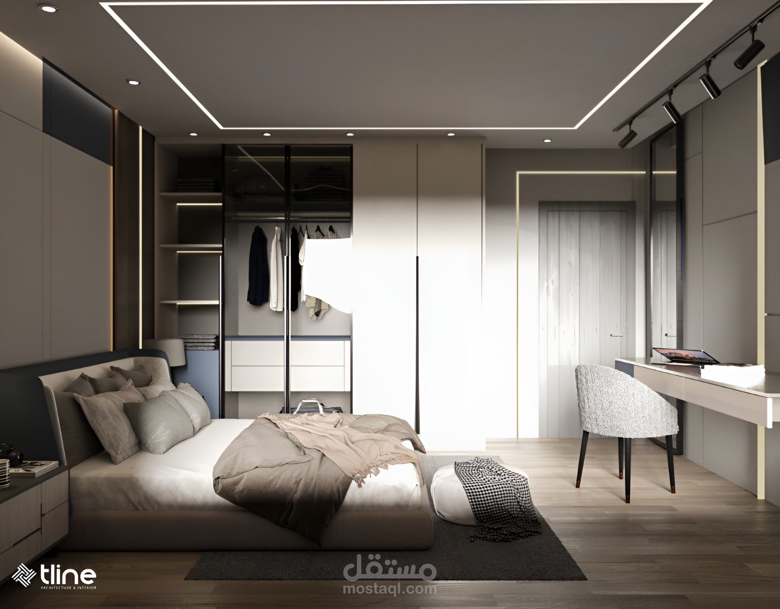 تصميم داخلي لغرفه فندقيه فاخره باستخدام احدث البرامج الهندسيه وتصميم بنظام المودرن