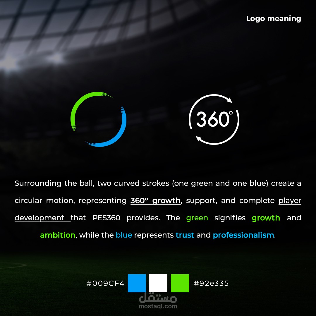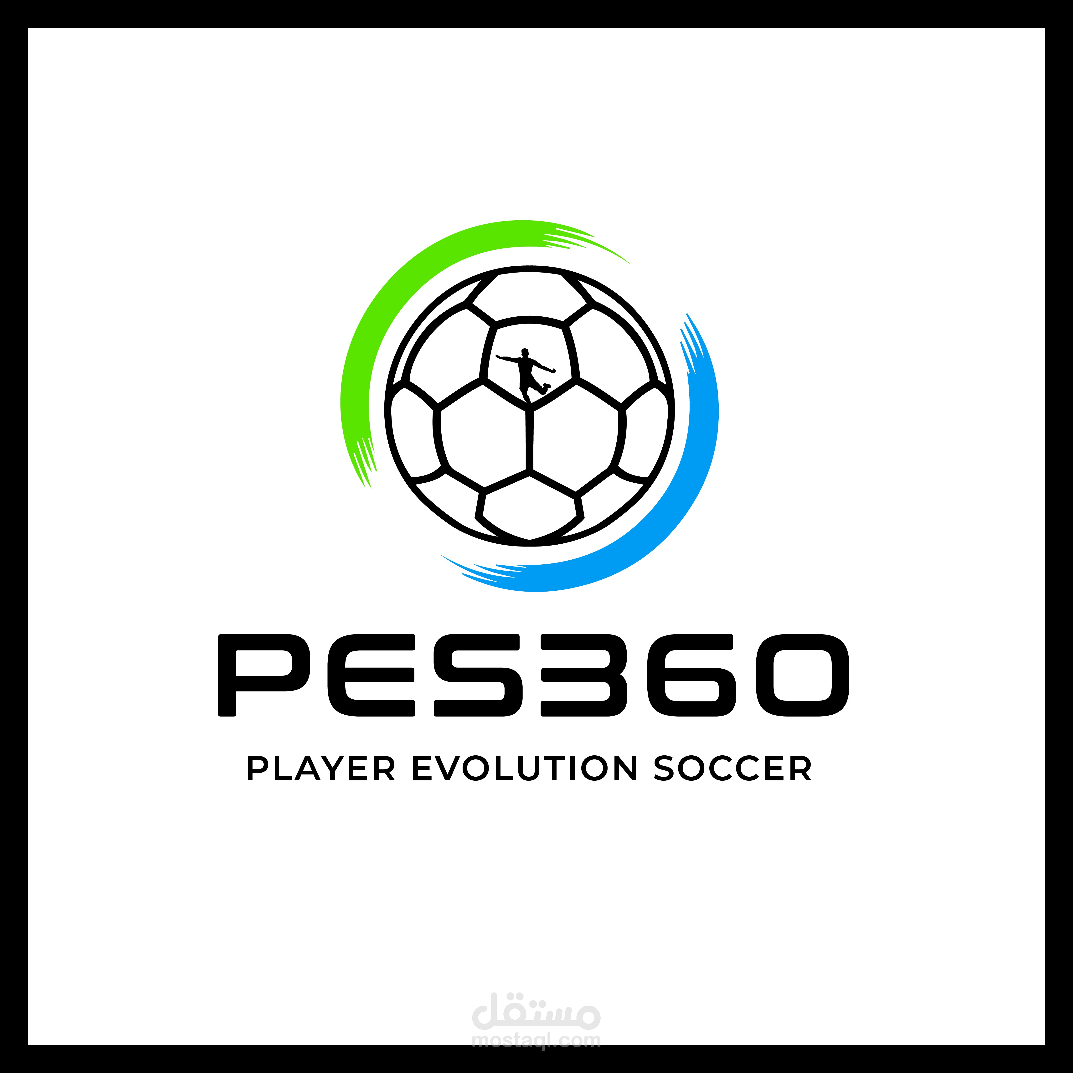 The logo for PES360 (Player Evolution Soccer) captures the dynamic spirit and dedication of a football player agency. It features a stylized soccer ball with a central icon of a player mid-action, symbolizing both the energy and evolution of players in their professional journey.