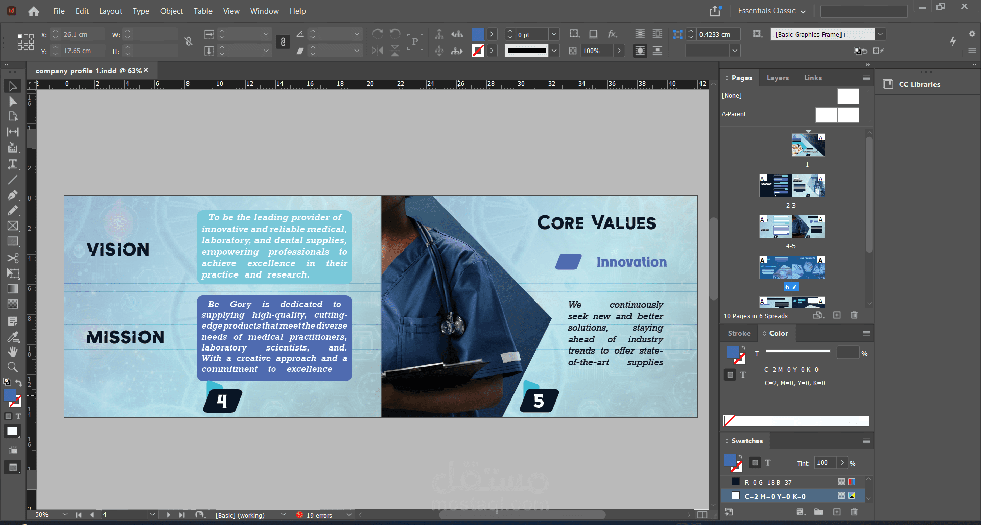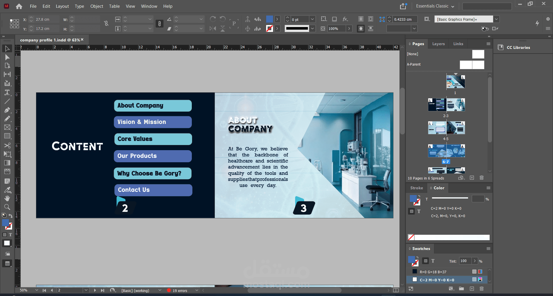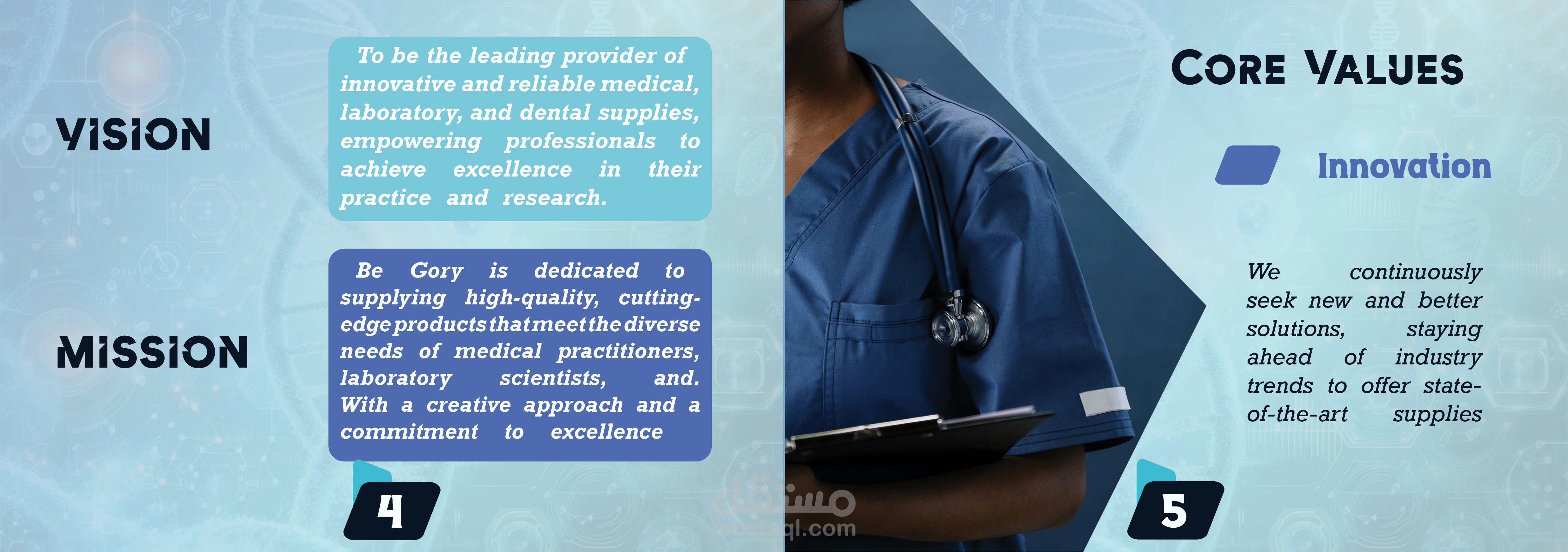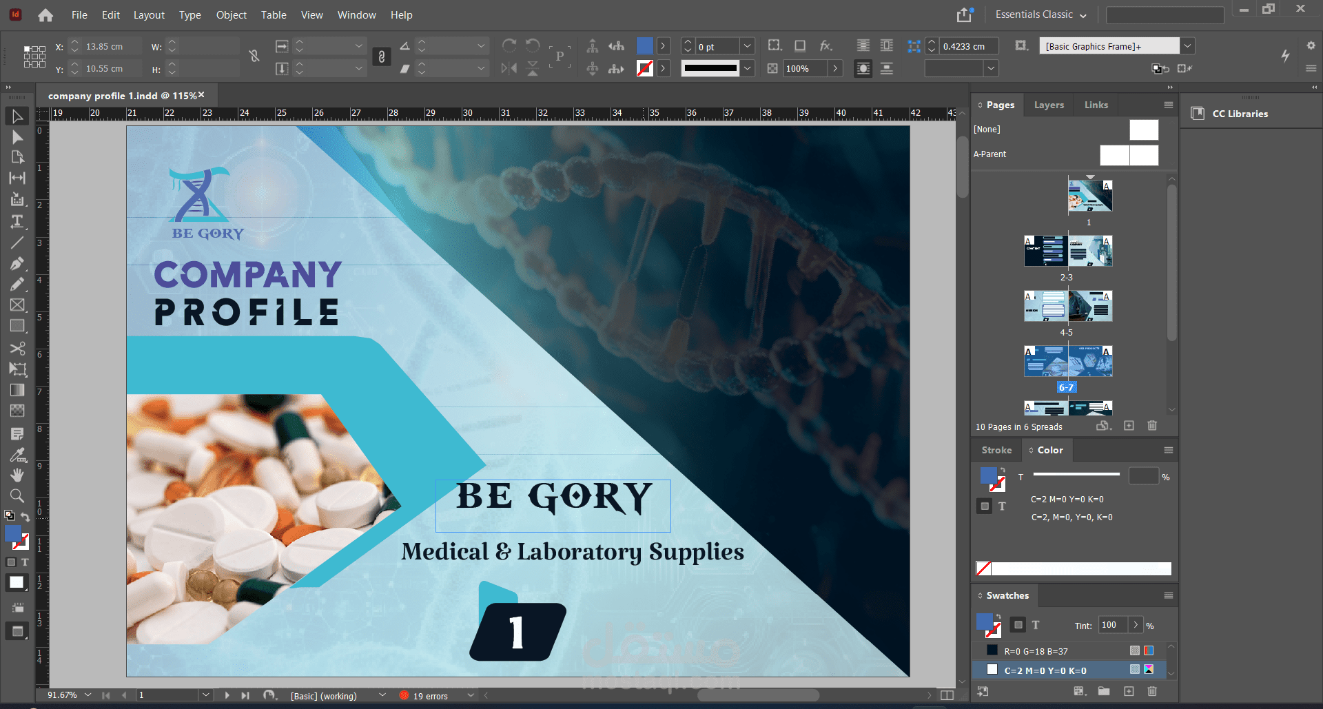 This company profile design for BiGory is a captivating blend of ancient Egyptian symbolism and contemporary design aesthetics. The logo, inspired by the Coptic script and the DNA helix, serves as the centerpiece of the design, representing the company's commitment to innovation and heritage.