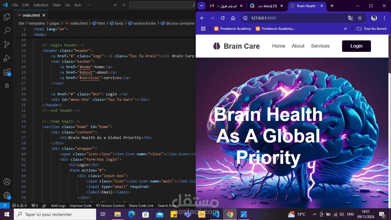 In these work i create a web site for doctor which contain home page , about us page , srvices page , login and register button.