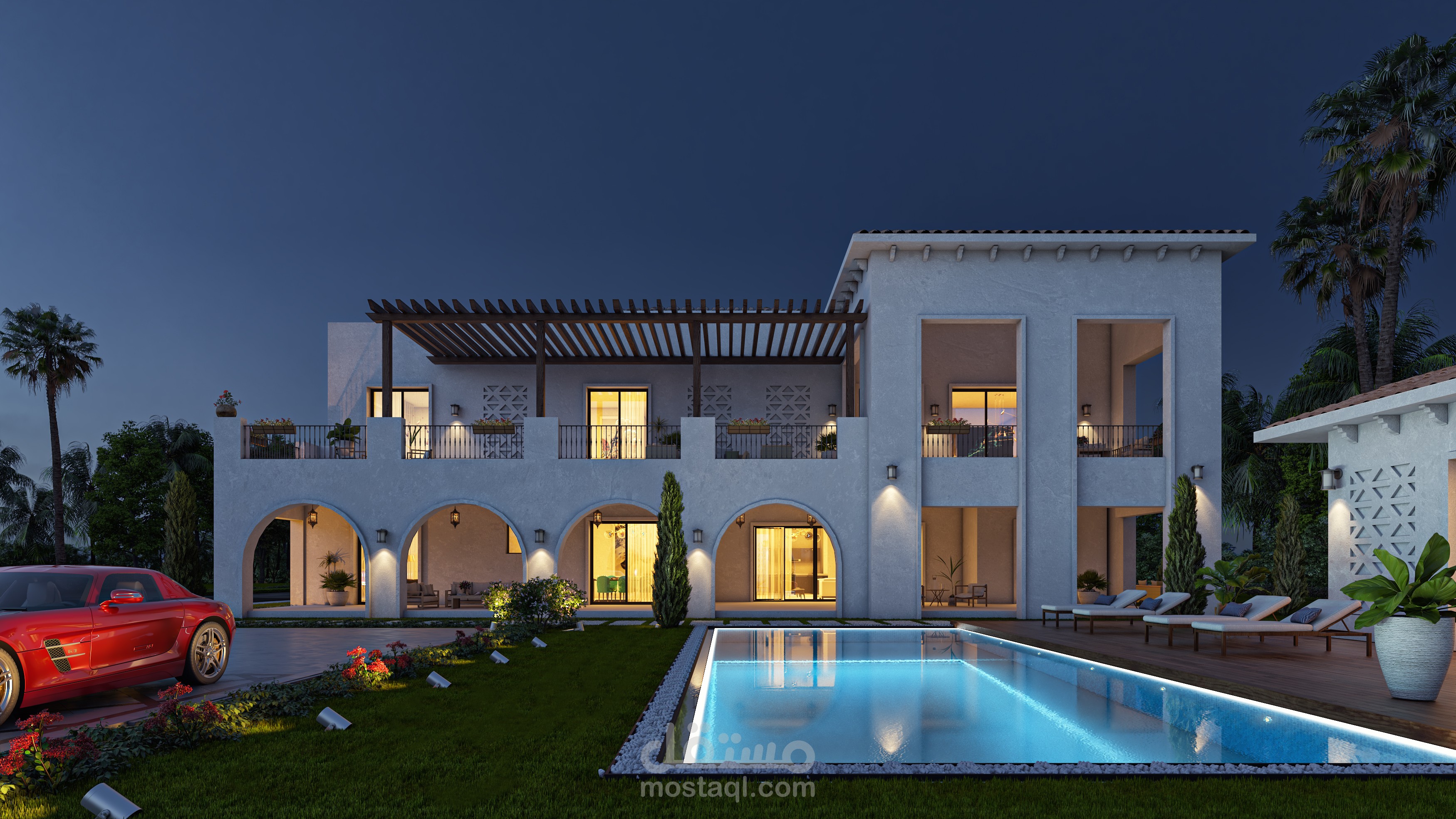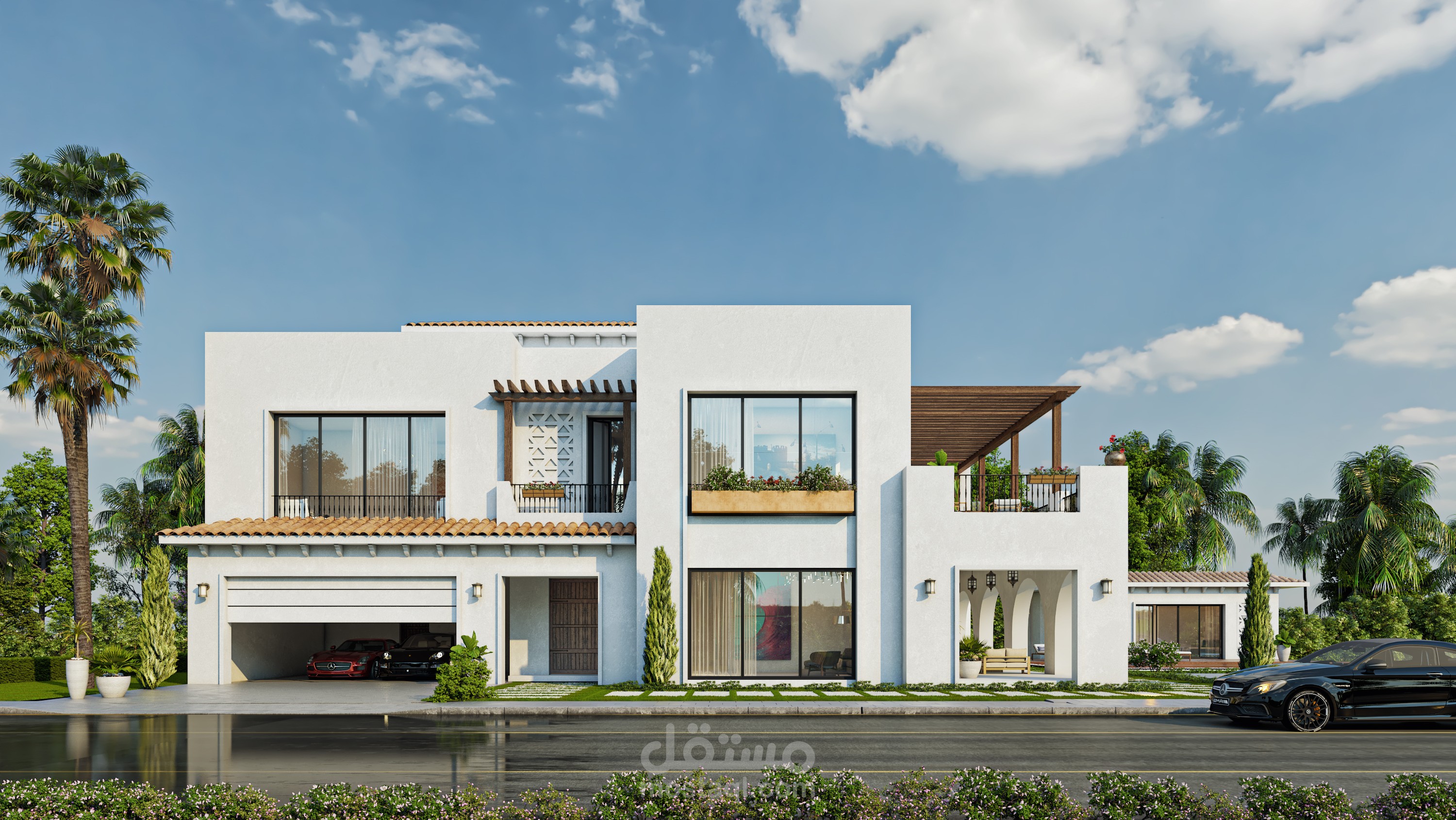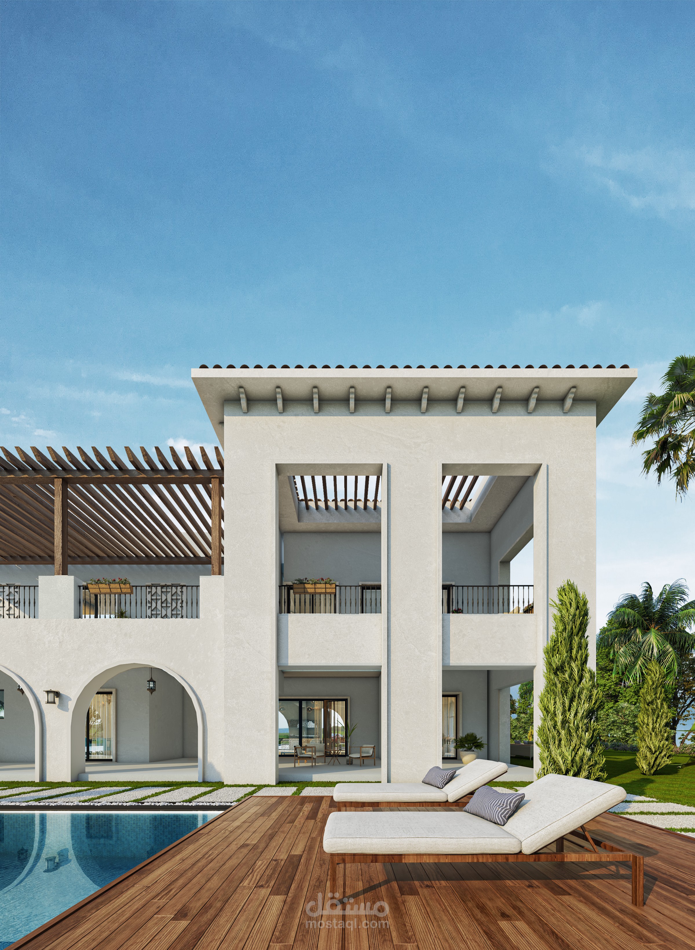 قمت بتصميم فيلا سكنية بالكامل، مروراً بالمراحل المختلفة من تكييف المساقط الأفقية للواجهات و التصميم ثلاثي الأبعاد و تصميم لاند سكيب الفناء و الارتدادات و تخريج الرسوم التوضيحية