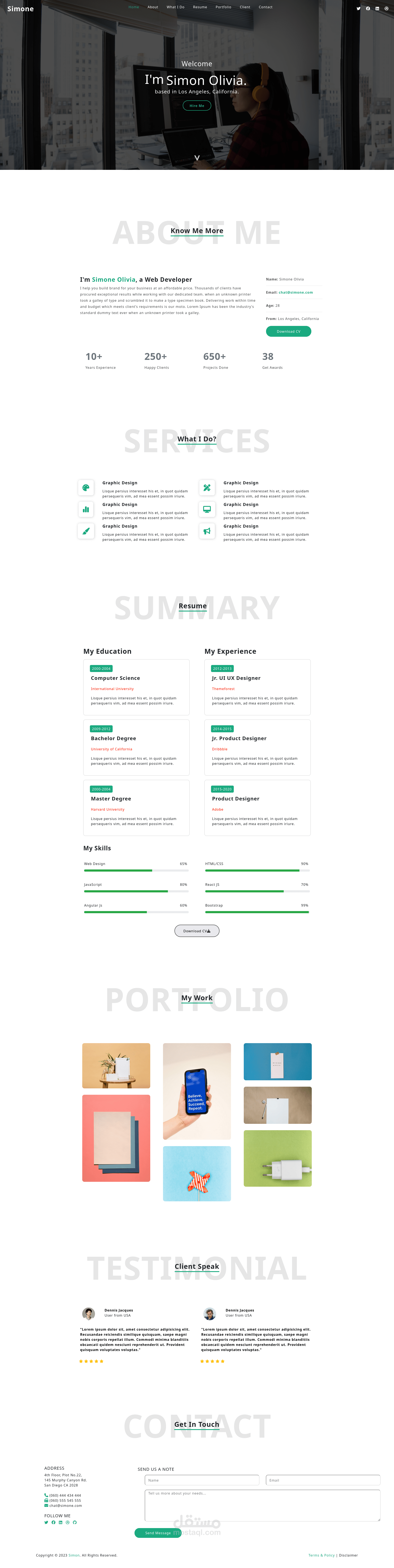 عرض واضح للخدمات والخبرات: يتيح للزوار الاطلاع بسهولة على الخدمات والمهارات المتوفرة لدى المصمم.